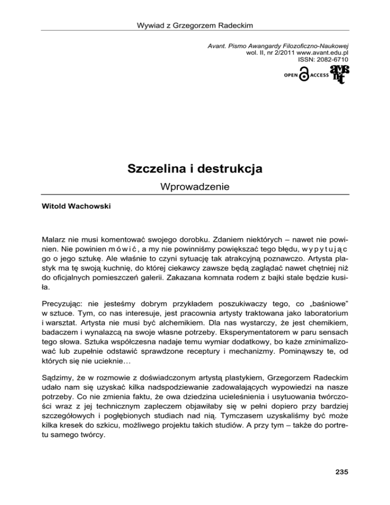 1. Szczelina i destrukcja. Wywiad z Grzegorzem Radeckim