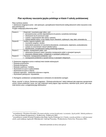 Plan wynikowy nauczania języka polskiego w klasie V szkoły