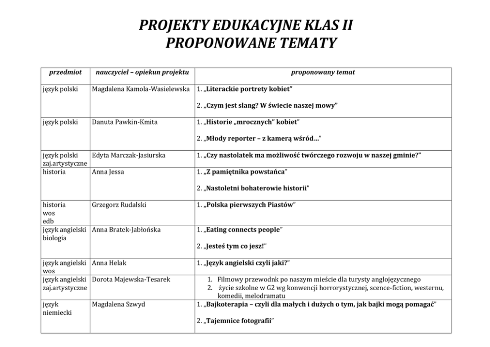 tematy projektów