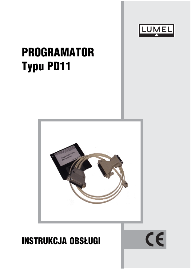 PROGRAMATOR Typu PD11 INSTRUKCJA OBS£UGI SPIS TRECI 1. ZASTOSOWANIE ................................................................................... 3 2. ZESTAW PROGRAMATORA .................................................................. 3 3. WYMAGANIA .......................................................................................... 3 4. INSTALACJA OPROGRAMOWANIA ...................................................... 3 5. PO£¥CZENIE PROGRAMATORA Z PRZETWORNIKIEM .................... 4 6. OPIS PROGRAMU PD11 ....................................................................... 4 6.1. Pasek menu .................................................................................... 6 6.2. Pasek narzêdzi ................................................................................ 7 6.3. Tryb edycji ....................................................................................... 7 6.4. Tryb programowania ........................................................................ 8 6.5. Pole - w³aciwoci przetwornika ...................................................... 9 6.6. Pole - parametry serwisowe .......................................................... 10 6.7. Pole - parametry przetwornika ...................................................... 13 6.8. Status programu ............................................................................ 17 7. DANE TECHNICZNE ............................................................................ 17 8. KOMUNIKATY O B£ÊDACH ................................................................. 18 1. ZASTOSOWANIE Programator PD11 przeznaczony jest do programowania w rodowisku Windows 95/98/2000/NT przetworników serii P11, P12. Programator umo¿liwia: l zmianê parametrów; l zapis, odczyt nastawionych parametrów do pliku pod dowoln¹ nazw¹; l dwa tryby pracy programu: - tryb edycji (edycja parametrów przetwornika z mo¿liwoci¹ ich wydruku, odczytu b¹d zapisu do pliku), - tryb programowania (tryb edycji po³¹czony z jednoczesnym zapisem zmienianych parametrów do przetwornika); l odczyt z przetwornika parametrów procesu (minimum, maksimum, wartoæ mierzona, itp.), parametrów obliczanych oraz zarejestrowanych (tylko P12); l kasowanie wartoci minimalnych i maksymalnych; l zabezpieczenie has³em dostêpu do parametrów przetwornika; l wizualizacjê na wykresie parametrów wprowadzonych charakterystyk: indywidualnej oraz wyjcia analogowego; l wydruk nastawionych parametrów; l automatyczne zapamiêtanie konfiguracji programu przy jego zamkniêciu. Program pracuje w systemie Windows 95/98/2000/NT. 2. ZESTAW PROGRAMATORA W sk³ad zestawu wchodz¹: - programator PD11 - dyskietki z oprogramowaniem - adapter - instrukcja obs³ugi - karta gwarancyjna 1 2 1 1 1 szt. szt. szt. szt. szt. 3. WYMAGANIA - Windows 95/98/2000/NT - oko³o 3 MB wolnego miejsca na dysku - minimum 4 MB pamiêci RAM 4. INSTALACJA OPROGRAMOWANIA Aby zainstalowaæ program nale¿y: 1. W³o¿yæ dyskietkê instalacyjn¹ do stacji dysków, np. a:\ ! 2. Klikn¹æ na przycisk Start na pasku zadañ Windows i wybraæ Uruchom... 3. Wpisaæ cie¿kê dostêpu, np. a:\setup.exe 4. Po uruchomieniu programu instalacyjnego okreliæ cie¿kê docelow¹ np. C:\Program Files\LZAE LUMEL S.A.\Programator PD11 oraz grupê robocz¹ np.: LZAE LUMEL S.A. 5. PO£¥CZENIE PROGRAMATORA Z PRZETWORNIKIEM Po³¹czenie programatora z przetwornikiem i komputerem PC przedstawia rys. 1. 16 x max 8 x max P11T DB 25 DB 25 DB 9 RS232 RJ 12 adapter DB9 / DB25 Zestaw programatora PD11 Rys. 1. Pod³¹czenie programatora do przetwornika i komputera 6. OPIS PROGRAMU PD11 Program PD11 realizuje dwie funkcje pracy: - tryb edycji, w którym mo¿na edytowaæ parametry wybranego przetwornika, oraz zapisywaæ i odczytywaæ je z pliku, - tryb programowania, realizuje to co tryb edycji z mo¿liwoci¹ bezporedniego zapisu zmienianych parametrów do przetwornika. Uruchomienie programu nastêpuje po klikniêciu ikony programu PD11 w grupie LZAE LUMEL S.A.. Program po uruchomieniu pracuje w trybie edycji. Okno g³ówne programu pokazane jest na rys. 2. " Pasek menu W³aciwoci przetwornika Pasek narzêdzi Wybór przetwornika Status programu Parametry serwisowe Parametry przetwornika Rys. 2. Okno g³ówne programu # 6.1. Pasek menu Menu Plik udostêpnia polecenia zapisu parametrów przetwornika do pliku, ich odczytu oraz wydruku. Zapisz parametry ... - Wywietla standardowy dialog zapisu do pliku, umo¿liwiaj¹c zapis parametrów aktualnie wybranego przetwornika. Otwórz parametry ... - Wywietla standardowy dialog otwarcia pliku, umo¿liwiaj¹c odczyt parametrów aktualnie wybranego przetwornika. W przypadku gdy wybrany przetwornik pracuje w trybie programowania standardowy dialog otwarcia pliku poprzedzony jest wywietleniem dialogu rys. 3: Naciniêcie przycisku Dalej>> powoduje odczyt parametrów przetwornika z pliku, a nastêpnie zapis tych parametrów do przetwornika. Rys. 3. Drukuj parametry ... - Wywietla standardowy dialog wydruku, umo¿liwiaj¹c wydruk parametrów aktualnie wybranego przetwornika. Menu Komunikacja umo¿liwia wybór portu komunikacyjnego do komunikacji z przetwornikiem. Wywietlana jest lista wszystkich portów szeregowych znalezionych w komputerze. Wybrany port jest automatycznie otwierany, konfigurowany i oznaczany znakiem =. $ Menu Jêzyk umo¿liwia wybór wersji jêzykowej programu. Wybrany jezyk jest oznaczony znakiem =. Menu Pomoc wywietla informacje o wersji programu PD11 oraz adres producenta. 6.2. Pasek narzêdzi Odczyt parametrów z pliku Zapis parametrów do pliku Wydruk Tryb pracy parametrów programu Wyjcie z programu Wiêkszoæ przycisków zawartych na pasku narzêdzi jest opisana w Pasku menu. Tryb pracy programu realizuje dwie funkcje: - tryb edycji - tryb programowania 6.3. Tryb edycji W trybie edycji mo¿liwa jest edycja parametrów wybranego przetwornika, zapis i odczyt z pliku oraz wydruk nastawionych parametrów. % 6.4. Tryb programowania Tryb programowania realizuje