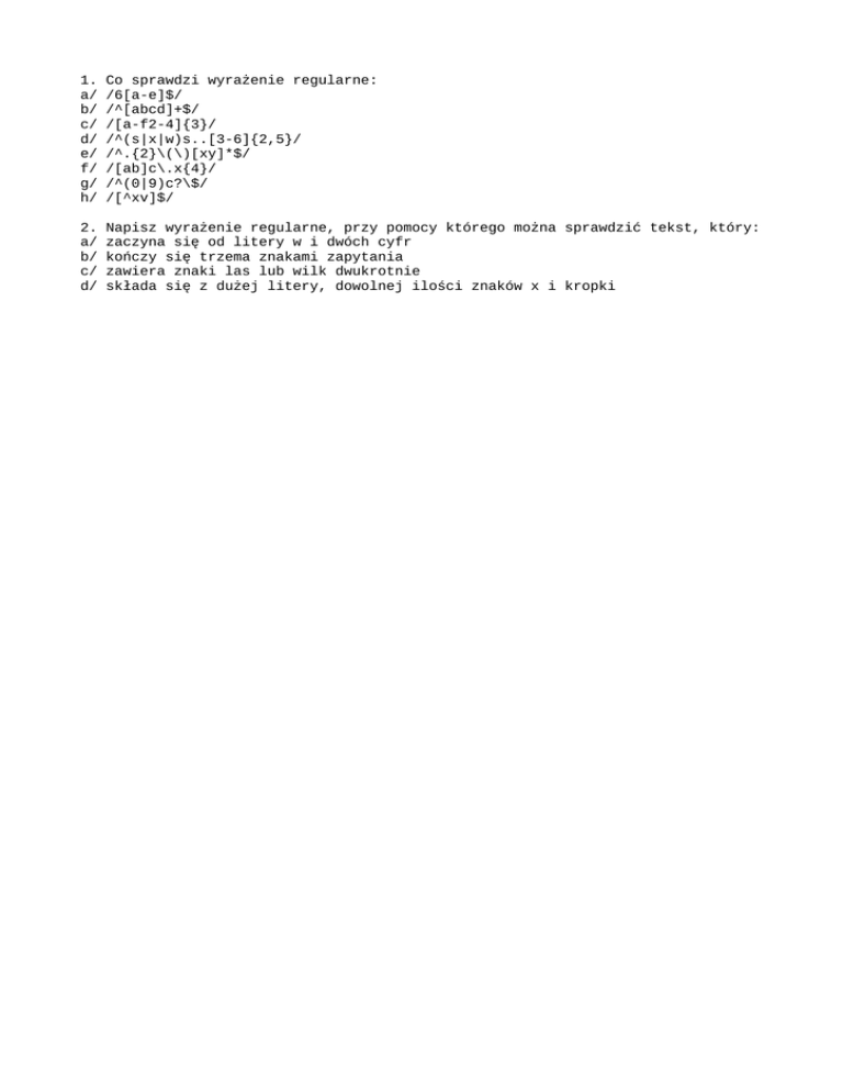 Napisz wyrażenie regularne, przy pomocy którego można sprawdzić tekst, który: