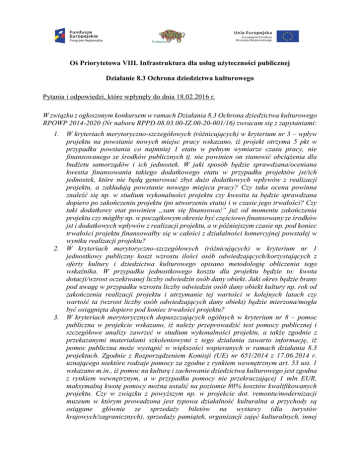 Pytania i odpowiedzi, które wpłynęły do Działania 8.3 do 18.02.2016 r.
