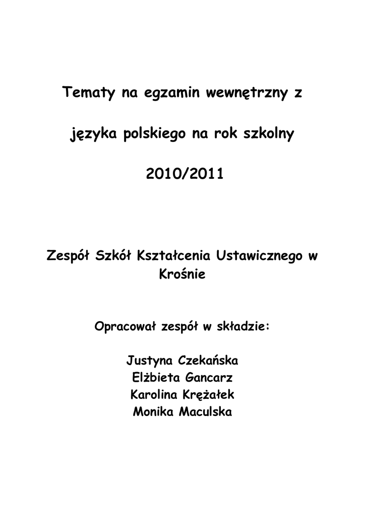 Tematy na egzamin wewnętrzny z j. polskiego - maj 2011