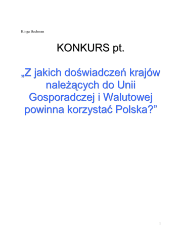 Kinga Bachman KONKURS pt. „Z jakich doświadczeń krajów należących do Unii Gosporadczej i Walutowej powinna korzystać Polska?” 1 Nauczycielka: - Dzień dobry! Temat dzisiejszej lekcji: Z wiiaaddcczzeeńń kkrraajjóów w Z jjaakkiicchh ddoośśw nnaalleeżżąąccyycchh ddoo U weejj Unniiii G Goossppooddaarrcczzeejj ii W Waalluuttoow ppoow Poollsskkaa?? wiinnnnaa kkoorrzzyyssttaaćć P Uczeń: - Proszę Pani, a o czym mówi ta Unia? N: - Nie wiecie? Prosiłam Was przecież, abyście przygotowali się do dziesiejszej lekcji... U: - Ja mogę o niej opowiedzieć! Unia Gospodarcza i Walutowa to określenie systemu współpracy państw Unii Europejskiej. N: - Czy tylko tych państw? U: - Nie. Należą do niej również trzy kraje spoza UE, czyli Monako, San Marino i Watykan. Dąży ona w szczególności do ujednolicenia polityki monetarnej, czyli wprowadzenia wspólnej waluty. Jej celem jest także koordynacja działań ekonomicznych i gospodarczych. N: - Tak, to prawda. Powstawała ona w trzech etapach. W pierwszym znoszono bariery w przepływie kapitałowym. włączano również waluty poszczególnych państw członkowskich do Europejskim Systemie Walutowym i coraz silniej koordynowano polityką gospodarczą. Etap ten trwał w latach 1990-1993. Drugi etap charakteryzował sie uniezależnieniem banków centralnych od rządów. Wyrównywano też różnice w poziomie rozwoju gospodarek poszczególnych krajów. Utworzono Europejski Instytut Walutowy, który po niedługim czasie przekształcono w Europejski Bank Centralny. Ten etap trwał do 1998 roku. Kto wie coś o ostatniej drodze do UGiW? U: - Realizowano ją do 2002 roku. W latach tych doprowadzono do funkcjonowania Europejskiego Systemu Banków Centralnych. Wprowadzono zatem wspólna walutę, jaką jest euro. Jednak nie stało sie tak we wszystkich członkowskich krajach, a jedynie w 12 z nich. U: - Czyli można powiedzieć, że głownymi cechami Unii Gospodarczej i Walutowej jest wspólna waluta i stabilne ceny. Państwa współpracują w polityce gospodarczej, przy czym unikaja wysokiej inflacji i zadłużenia budżetowego. Starają się też utrzymać niezalezność Europejskiego Banku Centralnego. N: Widzę, że zaczynacie myśleć, co mi się bardzo podoba. Jak sądzicie, jakie państwa osiągnęły sukces gospodarczy? U: - Irlandia! 2 N: - Nie dziwie się, że zaczęliście od tego państwa. Ostatnio jest o nim bardzo głośno. Rzeczywiście Irlandczycy osiągnęli sukces, możemy nawet mówić tu o "cudzie gospodarczym". Wiele osób uważa, że najbardziej przyczyniły się do tego fudusze strukturalne Unii Europejskiej. Jednak prawda jest taka, że były one tylko jednym z wielu czynników pomocniczych. Początkowo Irlandia miała wolny wzrost gospodarczy, raczej niestabilną makroekonomię, zatem nic nie wskazywałoby na to, że osiągną aktualną sytuację. Przyspieszenie rozwoju gospodarczego zaczęło się dopiero w latach 80. Jak wyczytałam, specjaliści uważają, że wiąże się to z reformami gospodarczymi w latach 1985-1988. To one spowodowały poszerzenie kapitału prywatnego. U: - Czyli ważniejsza jest polityka wewnętrzna kraju, a nie fundusze pomocnicze z Uni? Z tego, co pani mówi, to same pieniądze nie rozwiążą problemów. Trzeba wielu ludzi z wieloma propozycjami reform, aby dobrze wykorzystać te pieniądze, bo inaczej skutek może być znikomy bądź też negatywny, zupełnie inny od zakładanego. N: - Oczywiście, że tak. Wspomniane wcześniej fundusze europejskie i członkostwo w UGiW miały wpływ na dyscyplinę budżetową. Irlandia wprowadziła lepsze i z pewnościa korzystniejsze dla wielu Irlandczyków warunki prowadzenia przedsiębiorstwa. Wybrano właściwe priorytety rozwojowe, na które przeznaczono pieniądze z funduszy. Zajęto się także podniesieniem kwalifikacji urzędników administracji rządowej, co w niektórych państwach nadal niestety szwankuje. U: - Zatem Irlandia chcąc poprawić swą sytuacje nastawiła sie na inwestycje w edukację zawodową i rozwój działalności gospodarczych. To przyuczenie zawodowe przydałoby się w kilku krajach... N: - Olka... Aktualnie trwa debata nad priorytetami nowej polityki spójności realizowanej w Unii Europejskiej w latach 2007-2013. Jednym z pomysłów jest powołanie funduszu wzrostu i konkurencyjności. Jednak nie wiadomo jeszcze czy środki z niego będą przeznaczone dla nowych krajów członkowskich Unii. Nie wiadomo też czy będą realizowane w ramach europejskiej polityki regionalnej. Ograniczenie tej polityki byłoby niekorzystne dla Polski, bo mogłoby osłabić rozwój polityki regionalnej. Na przykładzie Irlandii widzimy, że trzeba właściwie połączyć inwestycje strukturalne z polityką finansów publicznych. Nie jest to łatwe, ale napewno wykonalne. Irlandia też początkowo miała problemy, ale wprowadziła restrukturyzacje niektórych wydatków społecznych i ograniczeniu skali transferów z budżetu państwa. U: - Ja jednak upierałabym się także przy podnoszeniu tych kwalifikacji... Szczególnie u nas... N: - No dobrze... Rzeczywiście w Polsce administracja rządowa jest kojarzona z brakiem profesjonalizmu. Wielu również sądzi, że bardziej dbają o siebie niż o społeczeństwo. Finansowo oczywiście. Niestety nadal nie podjeto prób zmiany takiej sytuacji. Irlandia przecież odniosła w tej dziedzinie sukces. Dlaczego więc nam nie mogłoby sie to udać? Irlandczycy doskonale umieją dostosować się do aktualnych warunków, można powiedzieć, że są bardzo elastyczni. Umieją 3 doskonale przewidzieć skutki wydania danego funduszu. W końcu lat 90. Irlandia przekroczyła barierę poziomu rozwoju, która dawała prawo do korzystania z funduszy unijnych. Wtedy podzieliła się na dwa regiony. Jeden, czyli tereny zachodnie, centralne i północne były terytorium biedniejszym. Co za tym idzie, zostały objęte pomocą strukturalną. Drugi region, południowowschodni, otrzymuje pomoc jedynie w okresach