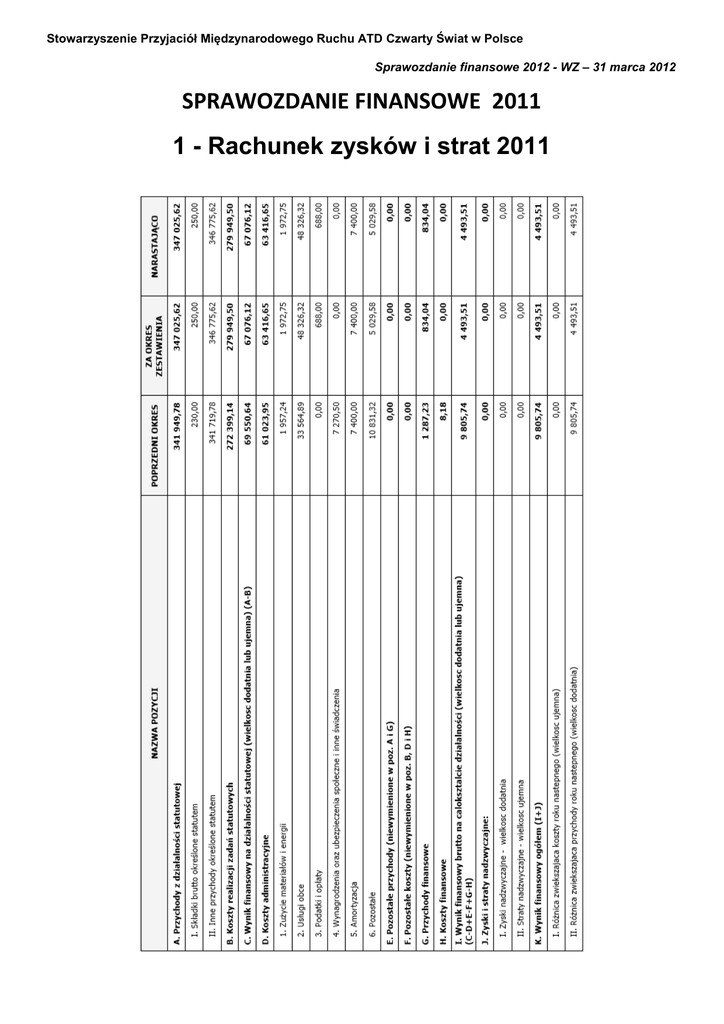Sprawozdanie finansowe Stowarzyszenia za rok 2011