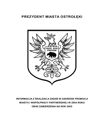 PREZYDENT MIASTA OSTROŁĘKI INFORMACJA Z REALIZACJI ZADAŃ W ZAKRESIE PROMOCJI MIASTA I WSPÓŁPRACY PARTNERSKIEJ W 2004 ROKU ORAZ ZAMIERZENIA NA ROK 2005 INFORMACJA Z REALIZACJI ZADAŃ W ZAKRESIE PROMOCJI MIASTA I WSPÓŁPRACY PARTNERSKIEJ W 2004 ROKU Ustawa o samorządzie gminnym i powiatowym nakłada na jednostki terytorialne stopnia podstawowego obowiązek realizacji zadań m. in. w zakresie: • promocji miasta – kompetencje gminy i powiatu, • współpracy z organizacjami pozarządowymi – kompetencje gminy i powiatu, • współpracy ze społecznościami lokalnymi i regionalnymi innych państw – kompetencje gminy. Promocja jest integralnym elementem Strategii Rozwoju Miasta. Obejmuje ona zorganizowane działania, polegające na przekazywaniu informacji na temat wspólnoty samorządowej wybranym adresatom. Działania promocyjne samorządu to popularyzowanie walorów miasta, upowszechnianie pozytywnego wizerunku na zewnątrz, kreowanie określonej polityki władz oraz pokazywanie możliwości rozwoju w różnych dziedzinach, leżących w gestii działania samorządu. Istotną funkcję spełnia tu rola informacyjna. Otwarta polityka informacyjna, jawność działań sprzyja kształtowaniu pozytywnego obrazu funkcjonowania samorządu, a tym samym zdobyciu lojalności mieszkańców, osób związanych z daną społecznością oraz zainteresowanych osiedleniem się czy też prowadzeniem interesów na danym terenie. Głównym celem promocji jest zwiększenie zainteresowania miastem i regionem potencjalnych inwestorów oraz turystów. Zadania do wykonania zostały określone w „Harmonogramie realizacji projektów promocji miasta na 2004 r.” Zgodnie z określonymi tam priorytetami w minionym roku działania marketingowe były realizowane w określonych grupach tematycznych. I. MONITORING WDRAŻANIA STRATEGII ROZWOJU MIASTA Podstawą działania władz lokalnych powinna być jasno określona polityka, planowe i skoordynowane działania na rzecz rozwoju lokalnego systemu gospodarczego, poprawy warunków życia i pracy mieszkańców oraz wzrostu atrakcyjności inwestycyjnej miasta. Jednym z narzędzi takich działań jest strategia, czyli kompleksowa i perspektywiczna koncepcja rozwoju, określająca cele oraz drogi ich osiągania. Zadania ujęte w Strategii mają swoje odzwierciedlenie w Wieloletnim Planie Inwestycyjnym, który łącząc w sobie element zarządzania finansowego z wielopłaszczyznowym odniesieniem działań do perspektywy czasowej, pozwala zarówno na zobrazowanie lokalnych potrzeb, korelację planowanych zadań jak i określenie możliwości ich sfinansowania w okresie pięcioletnim. Znając potrzeby i możliwości, poprzez stosowany w metodologii opracowania wieloletniego planu proces oceny inwestycji uzyskujemy obraz działań niezbędnych dla miasta, usystematyzowany wg obiektywnych kryteriów, spójnych ze strategicznymi celami rozwoju. Powyższe dokumenty opracowane zostały i zatwierdzone do realizacji w 2000 roku, ich realizacja jest pracą ciągłą wszystkich komórek i jednostek organizacyjnych miasta. Weryfikacja zadań ujętych w WPI odbywa się corocznie w procesie oceny zadań. W 2005 roku, przed rozpoczęciem prac nad kolejną edycją planu, przeprowadzona będzie weryfikacja procesu zgłaszania, oceny zadań inwestycyjnych oraz sposobu prezentacji planu. W minionym roku opracowany został kolejny dokument planistyczny, Plan Rozwoju Lokalnego, oparty na Strategii Rozwoju oraz Wieloletnim Planie Inwestycyjnym. W dokumencie tym zawarte zostały te z inwestycyjnych zadań strategicznych, na których powinna nastąpić koncentracja środków finansowych, dzięki czemu możliwe będzie ubieganie się o pozyskanie dofinansowania ze źródeł zewnętrznych. Ponadto w grudniu 2004r. podjęta została Uchwała Rady Miejskiej w sprawie określenia obszaru podległego rewitalizacji oraz przystąpienia do opracowania programu rewitalizacji Miasta Ostrołęki. Prace nad powyższym dokumentem prowadzone są w bieżącym 2005 roku. II. PROMOCJA ZEWNĘTRZNA – POZYSKIWANIE NOWYCH INWESTYCJI, WYKORZYSTANIE TERENÓW INWESTYCYJNYCH, STANOWIĄCYCH WŁASNOŚĆ MIASTA, LOKALNYCH PODMIOTÓW GOSPODARCZYCH I OSÓB PRYWATNYCH 1) Prowadzone są bieżące działania promujące tereny inwestycyjne, w tym Strefę Rozwoju Gospodarczego. Informacja o terenach inwestycyjnych zamieszczona jest na stronie internetowej i w publikacjach wydawanych przez Urząd Miejski, jak również w prasie i wydawnictwach biznesowych. Specjalnie opracowane materiały dla potencjalnych inwestorów wraz z procedurami i ofertami inwestycyjnymi były kolportowane bezpośrednio do zainteresowanych przedsiębiorców oraz do wielu instytucji i organizacji, które pomagają w nawiązywaniu szerokich kontaktów o charakterze gospodarczym. Adresatami byli m.in. Radcy Handlowi RP za granicą, Biura Radców Handlowych innych państw w Polsce, organizacje i izby gospodarcze, firmy developerskie, agencje pośredniczące w obrocie nieruchomościami, firmy z określonych branż oraz Polska Agencja Informacji i Inwestycji Zagranicznych oraz Agencja Rozwoju Przemysłu. Duży odzew na przeprowadzone bezpośrednie działania marketingowe był szczególnie ze strony Biur Radców Handlowych RP w państwach Unii Europejskiej. BRH były zainteresowane głównie ofertami gospodarczymi firm. Dlatego wszelkie informacje i materiały na ten temat były przekazywane bezpośrednio do lokalnych organizacji skupiających przedsiębiorców. Kolportaż materiałów odbywał się również podczas targów, seminariów, konferencji i innych spotkań okolicznościowych, 2) Prowadzona jest bieżąca aktualizacja bazy ofert inwestycyjnych z terenu Ostrołęki, w której znajdują się tereny komunalne przeznaczone pod inwestycje oraz tereny i obiekty lokalnych firm i osób prywatnych oraz propozycje współpracy gospodarczej zainteresowanych przedsiębiorstw. 3) Najważniejsze komunalne oferty inwestycyjne były zaprezentowane w katalogu p