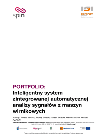 ! ! ! ! ! ! ! ! ! !! !! !! !! ! PORTFOLIO: Inteligentny system zintegrowanej automatycznej analizy sygnałów z maszyn wirnikowych ! ! Autorzy: Tomasz Barszcz, Andrzej Bielecki, Marzen Bielecka, Mateusz Wójcik, Andrzej Rychlicki Wprowadzenie ! Maszyny wirnikowe są bardzo szeroką klasą maszyn, używaną w praktycznie wszystkich dziedzinach przemysłu, od energetyki, poprzez transport, przemysł spożywczy aż do napędów robotów i lotnictwa. Bezpieczeństwo i optymalna eksploatacja zależą od poprawności wykrywania uszkodzeń i śledzenia procesów degradacyjnych. Diagnozowanie systemów mechanicznych, zwłaszcza o skomplikowanej budowie, realizowane w czasie normalnej eksploatacji charakteryzującej się dużą zmiennością warunków eksploatacyjnych (obciążenia, prędkości obrotowe), jest zagadnieniem bardzo trudnym. W praktyce zdarzają się sytuacje, gdy nie są wykrywane nawet poważne awarie. Ze statystyk producentów turbin wiatrowych, podobnie jest w przypadku układów napędowych maszyn górniczych, wynika stosunkowo duża awaryjność tych elementów. Główną przyczyną tej sytuacji jest brak dostatecznego nadzoru nad ewolucją stanu technicznego. Istniejące obecnie metody wykorzystują w ogromnej większości analizę sygnałów drgań mechanicznych, coraz częściej uzupełniane przez analizę tzw. parametrów procesowych. W ostatniej dekadzie opracowano wiele nowatorskich metod oceny stanu, często wykorzystujących narzędzia sztucznej inteligencji. W dalszym jednak ciągu do syntezy informacji i podjęcia decyzji niezbędna jest praca eksperta, który musi wziąć pod uwagę wyniki z licznych metod cząstkowych. Coraz więcej maszyn jest objętych monitorowaniem, które prawie zawsze obejmuje również monitorowanie sygnałów drganiowych. Bardzo istotnym problemem jest silna zależność poziomu drgań od warunków w jakich pracuje maszyny (przede wszystkim prędkości obrotowej i mocy). W wielu przypadkach zmiany drgań wynikające z rozwijających się uszkodzeń są dużo mniejsze niż zmiany drgań wynikające ze zmian punktu pracy. ! Zdefiniowanie problemu Celem niniejszego projektu jest opracowanie jednolitego, zintegrowanego systemu analizy sygnałów z maszyn wirnikowych. System taki, bazując na metodach sztucznej inteligencji, byłby w stanie przeprowadzić analizy cząstkowe (np. analiza stanu operacyjnego, walidacja danych, analiza fourierowska, analiza rzędów, cyklostacjonarna analiza modulacji, itp.). Następnie system wyznaczać będzie ! ! ! ! ! !2 ! ! zintegrowane wskaźniki stanu technicznego całej maszyny, jak również jej poszczególnych części składowych. Projekt obejmuje opracowanie systemów bazujących na różnego typu systemach sztucznej inteligencji. Przewiduje się, przede wszystkim, użycie metod typu Machine Learning, jak też sztucznych sieci neuronowych i systemów wnioskowania rozmytego oraz metod statystycznych. Przewiduje się również analizę różnego typu maszyn: maszyn górniczych, turbin wiatrowych, kompresorów tłokowych, pomp i wentylatorów. ! Potencjalny rynek odbiorców zainteresowanych opracowanymi technologiami Potencjalnymi nabywcami są wszystkie przedsiębiorstwa, które produkują lub eksploatują maszyny wirnikowe. Jest to ogromna grupa firm, obejmująca wiele gałęzi przemysłu. Zasadnicze typy podmiotów to: a) Producenci – z reguły są to duże przedsiębiorstwa, produkujące poszczególne maszyny wirnikowe (np. fabryka pomp, fabryka silników turbinowych) albo złożone systemy wykorzystujące takie maszyny (np. elektrownie konwencjonalne bądź wiatrowe, platformy wiertnicze, cementownie, samoloty, pociągi, pojazdy samochodowe) b) Właściciele – są to przedsiębiorstwa posiadające i eksploatujące złożone obiekty w których skład wchodzą maszyny wirnikowe c) Firmy remontowe – są to najczęściej poddostawcy firm właścicieli, którzy na ich zlecenie realizują kompleksowe usługi naprawczo – remontowe. Typowym przykładem mogą być zakłady remontowe energetyki, bądź firmy obsługujące farmy wiatrowe d) Specjalistyczne firmy konsultingowe – są to szybko rosnące w ostatnich latach z reguły niewielkie firmy oferujące usługi oparte na wiedzy, np. pomocy w problemach z uruchomieniem elektrowni. ! ! Uzyskane wyniki ! ! Energetyka wiatrowa charakteryzuje się inną strukturą kosztów niż energetyka konwencjonalna. Relatywnie wysokie są koszty inwestycji, w porównaniu do kosztów podczas całego cyklu życia turbiny wiatrowej. Po uruchomieniu największym kosztem są wydatki na obsługę (w energetyce cieplnej jest to koszt paliwa). Z drugiej strony elektrownie wiatrowe są źródłami energii o statystycznie najwyższej dyspozycyjności – rzędu 98%. Aby utrzymać tak wysoki poziom dyspozycyjności konieczne jest odpowiednie planowanie przeglądów i remontów, dzięki czemu właściciel może odpowiednio wcześnie wymienić zużywającą się elementy. Częstym przykładem jest wymiana łożyska (o koszcie rzędu 1 tys. EUR), która zapobiegnie uszkodzeniu, a później wymianie np. przekładni (ok. 100 tys. EUR) lub generatora (ok. 50 tys. EUR). Dodatkowo, do przeprowadzenia takiego remontu potrzebne jest wynajęcie dźwigu, co jest również kosztem rzędu wielu tysięcy EUR (koszt ten jest znacznie wyższy dla turbin zainstalowanych na szelfie morskim). W konsekwencji pojawiło się i szybko się zwiększa zapotrzebowanie na systemy monitorowania i diagnostyki turbin wiatrowych. Godny uwagi jest fakt, że zapotrzebowanie to spowodowane zostało nie – jak w przypadku dużych turbozespołów w energetyce konwencjonalnej – głównie kosztami utraconej produkcji, ale właśnie kosztami dodatkowej obsługi i remontów. Na szybki rozwój systemów monitorowania i diagnostyki miały również duży wpływ firmy ubezpieczeniowe. Aby utrzymać wysoki poziom dyspozycyjności konieczne jest odpowiednie planowanie przeglądów i remontów. Jest to możliwe dzięki m