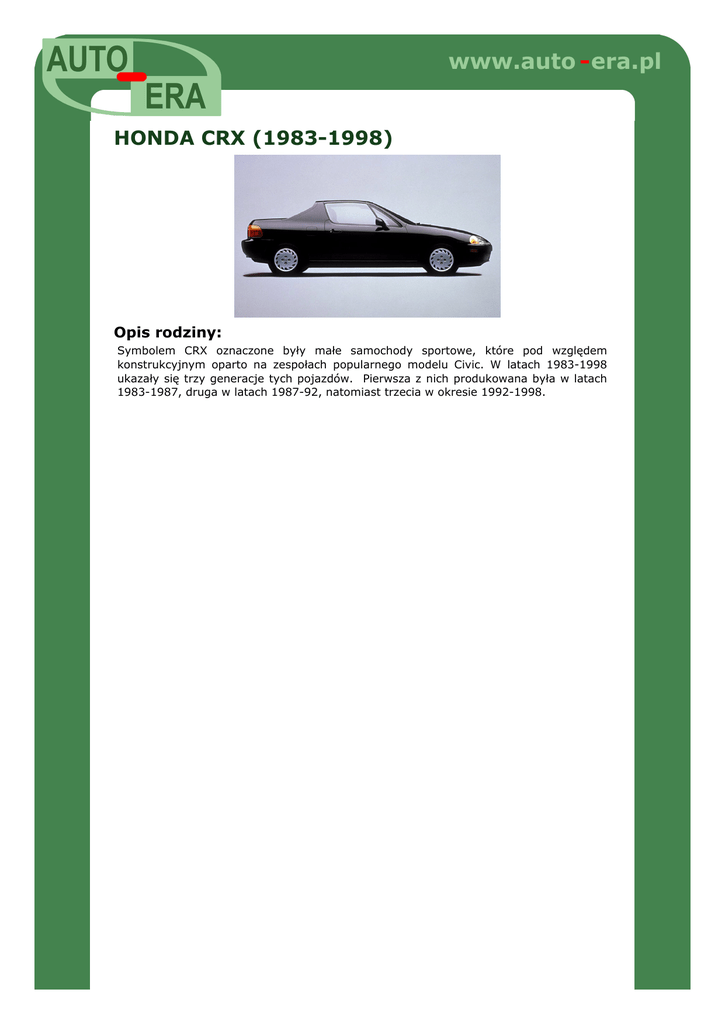 Opis rodziny: HONDA CRX. - AUTO-ERA