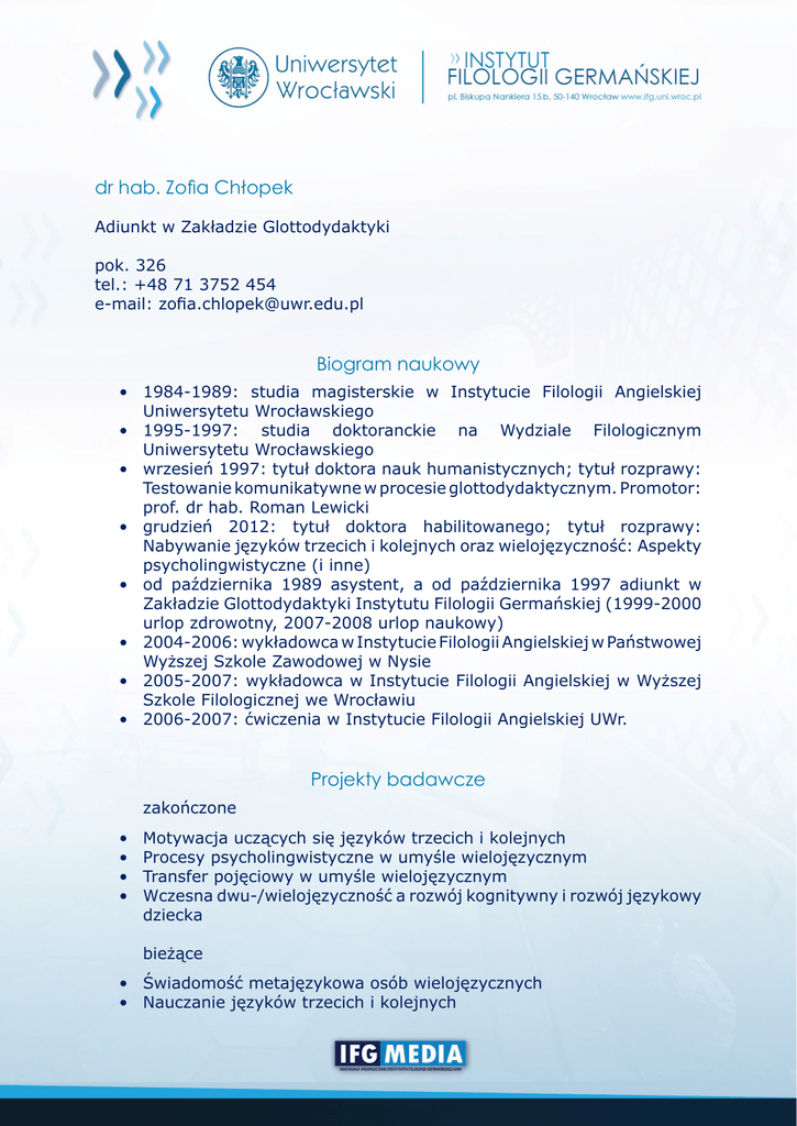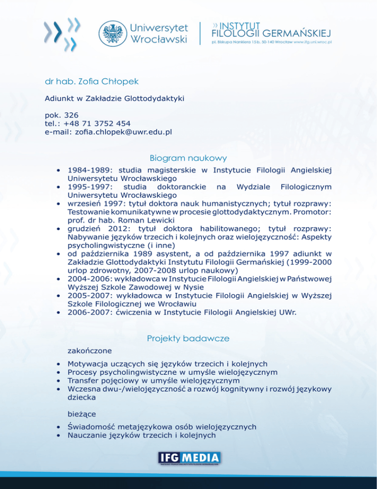 Pełny Biogram - Instytut Filologii Germańskiej UWr