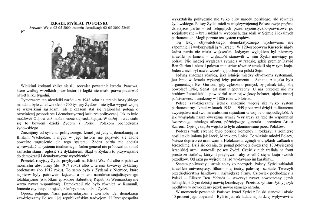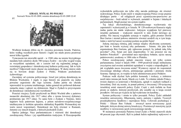 IZRAEL MYŚLAŁ PO POLSKU Wielkimi krokami zbliża się 61