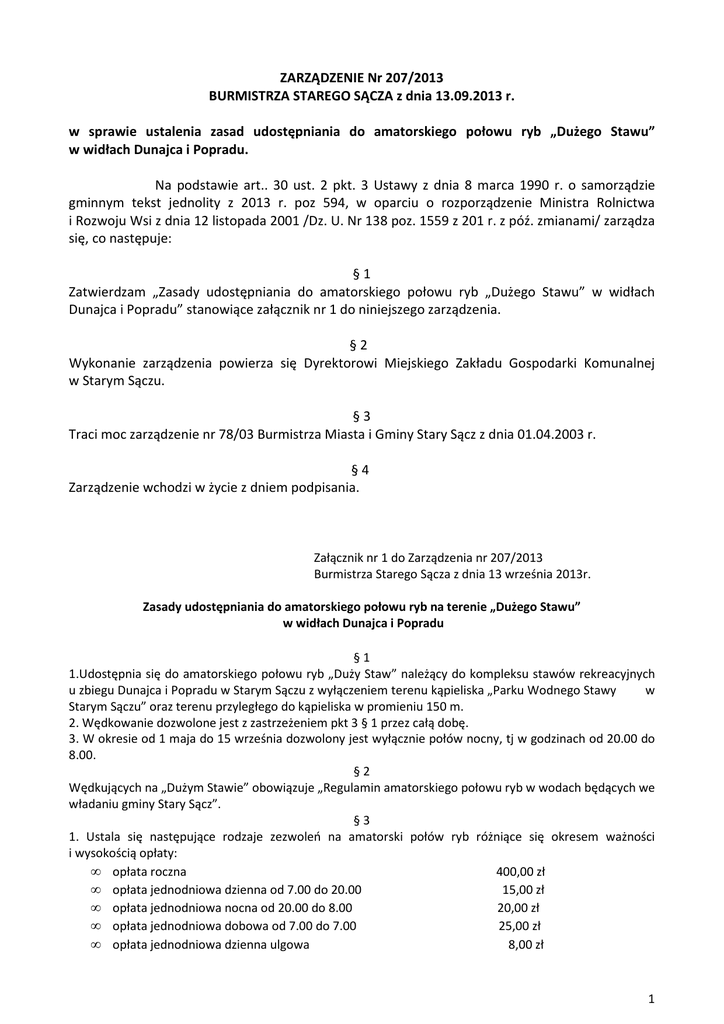 ZARZĄDZENIE Nr 207/2013 BURMISTRZA STAREGO SĄCZA z