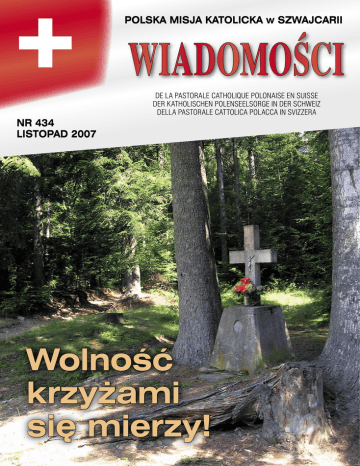 POLSKIEMISJA DUSZPASTERSTWO KATOLICKIE POLSKA KATOLICKA w SZWAJCARII w SZWAJCARII WIADOMOŚCI NR 434 431 NR LIPIEC - SIERPIEŃ 2007 LISTOPAD 2007 DE LA PASTORALE CATHOLIQUE POLONAISE EN SUISSE DE LA PASTORALE CATHOLIQUE POLONAISE EN SUISSE DER KATHOLISCHEN POLENSEELSORGE IN DER SCHWEIZ DER KATHOLISCHEN POLENSEELSORGE IN DER SCHWEIZ DELLA PASTORALE CATTOLICA POLACCA IN SVIZZERA DELLA MISSIONE CATOLICA POLACCA DI SVIZZERA Wolność krzyżami się mierzy! NR 434 (LISTOPAD) – WIADOMOŚCI 1 Msze święte w Ośrodkach Polskiej Misji Katolickiej w Szwajcarii BAZYLEA – kościół Sacré Coeur, Feierabendstr. 68, W każdą niedzielę – g. 11.45 MONTHEY – Chapelle du Closillon, Chemin d’Arche 2. niedziela miesiąca – g. 19.15 BERNO – krypta w kościele Bruder Klaus, Burgenziel/Ostring, 2. i 4. niedziela miesiąca – g. 11.15 NEUCHATEL – 85, Faubourg de l’Hopital 2. i 4. niedziela miesiąca – g. 10.00 BIEL/BIENNE – kaplica Misji Włoskiej, Murtenstr. 50, 2. niedziela miesiąca – g. 9.00 FRIBOURG – St Justin W każdą niedzielę – g. 20.00, spowiedź od g.19.00 GENEWA – Kościół świętej Teresy, 14, Avenue Peschier, W każdą niedzielę – g. 12.00 Pierwszy piątek miesiąca adoracja Najśw. Sakramentu i spowiedź od 18.30, Msza św. – g. 19.30 GNADENTHAL – kościół św. Justy w Krankenheim, W każdą niedzielę – g. 11.00 W każdą środę różaniec – g. 19.30 Pierwszy piątek miesiąca Msza św. – g. 19.30 LOZANNA – kościół St. Nicolas de Fluë Avenue de Chailly 38, W każdą niedzielę – g. 17.00 W I niedzielę miesiąca także o 11.30 W pierwszy piątek miesiąca spowiedź od godz. 19.00, Msza św. – g. 19.30 LUCERNA – krypta w kościele St. Karl, Spitalstr. 93 3. i 4 niedziela miesiąca – g. 17.00 MARLY – kaplica PMK, Chemin des Falaises 12 Od wtorku do piątku – g. 8.30 (fr.) Niedziela – g. 11.00 2 WIADOMOŚCI – NR 434 (LISTOPAD) SION – kaplica Sióstr Bożej Opatrzności, 6, rue de Gravelone 3. sobota miesiąca – g. 18.00 SOLURA-ZUCHWIL – kościół parafialny St. Martin, Hauptstr. 1. niedziela miesiąca – g. 17.00 ST. GALLEN – Katedra 4. niedziela miesiąca – g. 9.30 SEMENTINA – Chiesa di San Michele 3. niedziela miesiąca – g. 17.00 WETTINGEN – kaplica przy kościele St. Anton, Antoniusstr. 20. 4. niedziela miesiąca – g. 18.00 WINTERTHUR – kościół St. Joseph, Nagelseestr. 46 2. niedziela miesiąca – g. 17.00 3. niedziela miesiąca – g. 8.45 VISP – kaplica w Paulusheim 1. niedziela miesiąca – g. 19.30 ZUG – kaplica SS. Klawerianek, Oswaldgasse 17, 1. niedziela miesiąca – g. 9.30 ZURYCH – kościół Serca Jezusowego, Zurych-Wiedikon, Aemtlerstr./Gertrudstr., W każdą niedzielę – g. 12.15 1. piątek miesiąca spowiedź od 18.30 Msza św. – g. 19.30 (po polsku i niemiecku) 1. sobota miesiąca – Msza św. o g. 17.30 SŁOWO KSIĘDZA REKTORA Drodzy Czytelnicy Magna Res Libertas. Wolność to wielka rzecz. Ten napis z kolumny w Rapperswil jest bardzo ważny dla każdego Polaka, zwłaszcza w listopadzie. Dla każdego Polaka, który ma odwagę myśleć, 11 listopada będzie dniem dziękczynienia za tych wszystkich, którzy zapłacili cenę swojego życia, cierpienia po to abyśmy mogli być Polakami. Dlatego cieszą mnie wszelkie inicjatywy ze strony ludzi świeckich mające na celu jak najpiękniejsze uczczenie tej rocznicy: jako wspomnienia, ale także jako powodu do radosnego świętowania. 11 listopada nie jest dniem smuty narodowej – dniem pełnym nudnych prelekcji, ale radosnym Świętem. Kiedy obchodzimy rocznicę odzyskania niepodległości tu na helweckiej ziemi, nie wolno nam też zapomnieć o znaczeniu słów Jana Pawła II „Wolność jest dana i zadana”. Dlatego w tym numerze Wiadomości nie zabraknie treści patriotycznych. 11 listopada w Kościele katolickim w Szwajcarii jest obchodzony jako Dzień Narodów-Dzień Migranta. Naprawdę warto zapoznać się z tekstem Listu biskupów szwajcarskich na ten dzień. Bardzo jestem wdzięczny Księdzu Krzysztofowi Zadarko za przeprowadzenie wywiadu z dr. Ursem Koppelem odpowiedzialnym za duszpasterstwo obcokrajowców w Szwajcarii. Jako Rektor PMK w Szwajcarii pragnę z całego serca podziękować Migratio za życzliwość, którą nas obdarzają. To prawda, że koncepcja dotycząca duszpasterstwa wśród Polonii w Szwajcarii jest bardzo minimalistyczna. Możnaby zapytać: kto ze Szwajcarów lub kapłanów innych narodowości jest w stanie zapewnić opiekę duszpasterską dla 20 Ośrodków Duszpasterskich w całej Szwajcarii mając do dyspozycji 1 księdza na etacie i ewentualnie 1 lub 2 studentów do pomocy?! Były takie niedziele, że trzeba było wyjeżdżać z Marly po 5 rano, aby być w Saint Gallen na 9, po Mszy świętej i krótkim spotkaniu z wiernymi następował wyjazd do Zurychu na 12. 15. Tam msza święta, spotkanie z ludźmi i wyjazd na 17 lub 18 do Luzerny lub innego miejsca. Powrót do Marly przed północą. Piszę to tylko po to, aby zobrazować sytuację, a nie po to, aby narzekać. Jednak o takiej koncepcji zadecydowano przed moim przybyciem do Szwajcarii. W tym miejscu chciałbym podziękować Stowarzyszeniu Przyjaciół Misji za znakomite wyczucie sytuacji i gotowość spieszenia z pomocą PMK. Wydaje się, że nadszedł czas, aby wykorzystując klimat wielkiej życzliwości ze strony Migratio, a także diecezji Fryburg-Genewa-Lozanna rozmawiać o przyszłości w duchu wzajemnego zrozumienia i niemniejszej życzliwości. O tej życzliwości mogliśmy się przekonać podczas wystąpienia Mgr Remy Berchier w czasie uroczystości Patrona Misji w Marly 21.10.2007 r. W związku z tym wydarzeniem pragnąłbym bardzo serdecznie podziękować wszystkim, którzy z tak wielkim zaangażowaniem przygotowali tę uroczystość. „To wielka sprawa przeżywac święto w takiej atmosferze”- tak mi dziękowali uczestnicy uroczystości. Za rok Uroczystość Odpustowa będzie w SOBOTE 18.10.2008 r. i będzie połączona