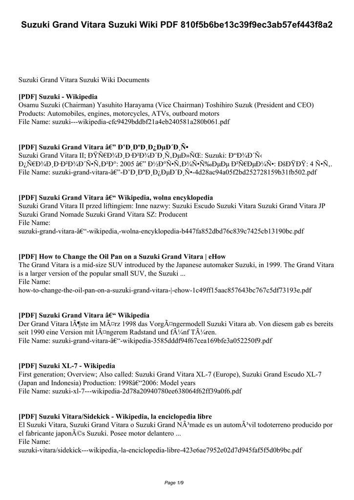 Suzuki Grand Vitara Suzuki Wiki PDF