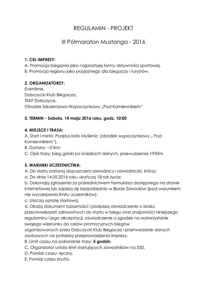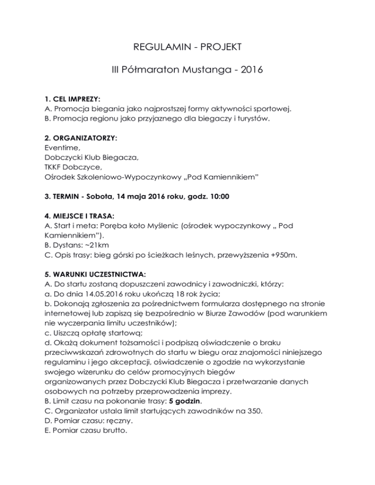 REGULAMIN - Półmaraton Mustanga