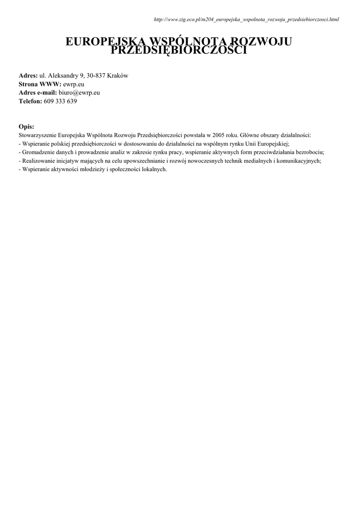 EUROPEJSKA WSPÓLNOTA ROZWOJU PRZEDSIĘBIORCZOŚCI