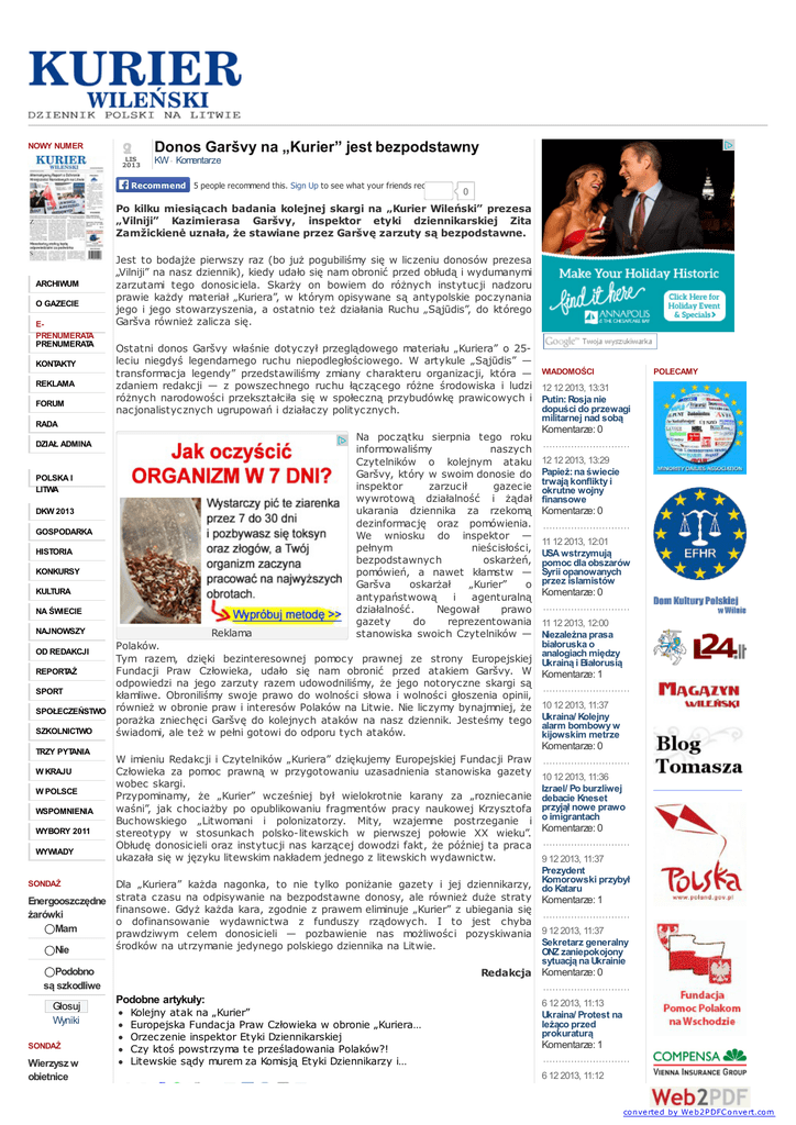 Donos Garszwy Na Kurier Jest Bezpodstawny 20.12.2013 KURIER