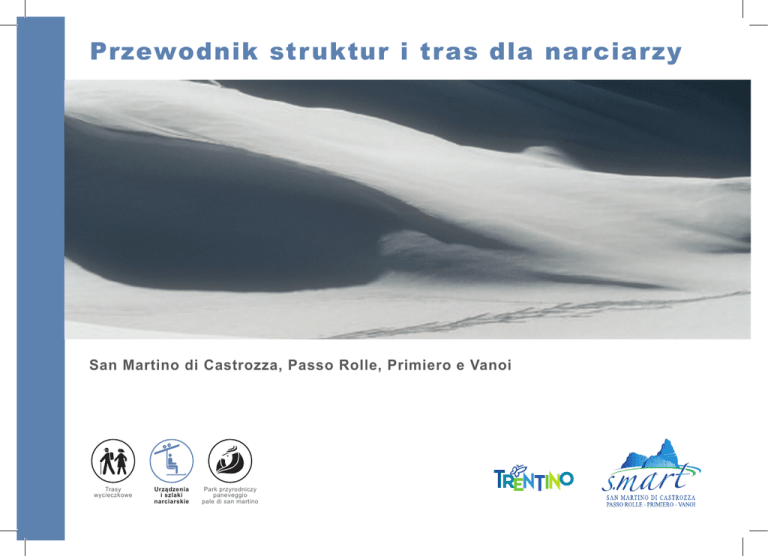 Przewodnik str uktur i tras dla narciarzy San Martino di Castrozza, Passo Rolle, Primiero e Vanoi Trasy wycieczkowe Urządzenia i szlaki narciarskie Park przyrodniczy paneveggio pale di san martino Przewodnik str uktur i tras dla narciarzy Ski teren San Martino di Castrozza - Passo Rolle Obszar dla narciarzy w San Martino di Castrozza - Passo Rolle, jest częścią carosello Dolomiti Superski, charakteryzuje się przystępnymi temperaturami i dużą ilością dni słonecznych. Trasy rozciągają się na ponad 60 km., na wysokości pomiędzy 1.404 i 2.357 m. wśród pięknej natury, oferując szlaki dobrze przygotowane o różnym stopniu trudności. Co noc pracuje piętnaście maszyn ubijających śnieg na trasach, a urządzenia do wytwarzania śniegu gwarantują dobrą jakość zjazdów podczas całego sezonu. Śnieg w Passo Rolle Działają 23 wyciągi, a wśród nich szybkie wyciągi kabinowe z Tognola i Colverde, wyciągi krzesełkowe czteroosobowe z Punta Ces z zadaszeniem z plexiglasu i nowy wyciąg krzesełkowy o automatycznym zaczepie Rododendro. Dojazd do wyciągów jest gwarantowany przez skibus, ze wszystkich okolicznych miejscowości. Ponad stu instruktorów nauki jazdy na nartach, udziela lekcji w narciarstwie zjazdowym, biegach na nartach (30 km trasy w okolicy), carving, snowboard e telemark. Są również instruktorzy sportowi i nauczyciele wyspecjalizowani w pracy z dziećmi niepełnosprawnymi. Śnieg na Cimon della Pala Ski teren z San Martino di Castrozza i Passo Rolle rozciąga się w większości na terenie Parku Przyrody w Paneveggio - Pale di San Martino. Jazda na nartach wzdłuż szlaków w tak niebywałym środowisku naturalnym, przysparza wielu emocji. I na koniec tej oferty zimowej, dodamy dwa centra biegów na nartach wyposażone, wycieczki zjazdowe i wycieczki z rakietami śnieżnymi. s t r. 2 Przewodnik str uktur i tr as dla nar ciarzy Wyciąg kabinowy Tognola s t r. 3 Przewodnik str uktur i tras dla narciarzy Spis Narciarstwo alpejskie i snowboard .......................................................................................................................... Str. 06 Carosello na Malghe .............................................................................................................................................. Str. 07 Wyciągi Carosello delle Malghe ............................................................................................................................. Str. 08 Trasa TOGNOLA UNO ............................................................................................................................................ Str. 10 Trasa TOGNOLA TRE ............................................................................................................................................ Str. 11 Trasa CIMA TOGNOLA ........................................................................................................................................... Str. 12 Trasa RODODENDRO .......................................................................................................................................... Str. 13 Trasa CONCA ......................................................................................................................................................... Str. 14 Trasa SCANDOLA .................................................................................................................................................. Str. 15 Trasa CIGOLERA ................................................................................................................................................... Str. 16 Trasa BABY TOGNOLA .......................................................................................................................................... Str. 17 Trasa DIRETTISSIMA ............................................................................................................................................. Str. 18 Trasa SOLE ............................................................................................................................................................ Str. 19 Trasa COLBRICON ................................................................................................................................................ Str. 20 Trasa REKORD ...................................................................................................................................................... Str. 21 Trasa CRISTIANIA .................................................................................................................................................. Str. 22 Trasa BELLARIA ..................................................................................................................................................... Str. 23 Trasa VALBONETTA ............................................................................................................................................... Str. 24 Obszar Colverde-Rosetta – Nauka jazdy na nartach Pra’ delle Nasse .................................................................. Str. 25 Trasa COLVERDE oświetlona o zmroku ................................................................................................................. Str. 26 Nauka jazdy na nartach PRA’ DELLE NASSE ........................................................................................................ Str. 27 Ski teren w Passo Rolle ......................................................................................................................................... s t r. 4 Str. 28 Przewodnik str uktur i tr as dla nar ciarzy Spis Wyciągi z Passo Rolle ........................................................................................................................................... Str. 29 Trasa PARADISO 1 ....................................................................................................