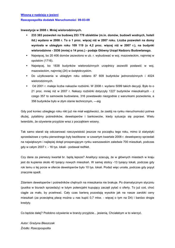 Wiosną z nadzieją o jesieni Rzeczpospolita dodatek Nieruchomości