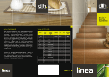 KOLEKCJA BLATÓW KLEJONYCH BLATY I PÓŁKI KLEJONE Hitem ostatnich miesięcy na rynku materiałów stosowanych do urządzania wnętrz stały się blaty klejone z drewna. Wykonane z drewna egzotycznego – ostatnio bardzo popularnego, spełniają wymogi najbardziej wymagających klientów. W porównaniu do krajowych gatunków takich jak dąb czy buk, są o wiele trwalsze i odporniejsze. Wszystkie z proponowanych gatunków mają dużą gęstość i wysoką stabilność tj. charakteryzują się niskim współczynnikiem skurczu. Niewątpliwą zaletą tych produktów jest to, że zachęcają swoją atrakcyjną ceną oraz niespotykanym charakterystycznym wyglądem. Dodatkowym atutem stosowania gatunków egzotycznych jest bardzo szeroka gama kolorystyczna. Dostępne są zarówno bardzo jasne gatunki – bambus o słomkowej barwie, dąb, buk, bardzo jasna hevea, w odcieniach ciepłych brązów –teak, iroko, orzech amerykański; w szerokiej gamie czerwieni- merbau i zróżnicowany kolorystycznie od brązów po czerń palisander. TABELA BLATÓW LINEA Gatunek Grubość (mm) Szerokość x długość (mm) Avangard Lite Folia Szlifowanie p.120 Bambus 27 620 x 2440 X Buk 27 620 x 3020 X X X Dąb 27 620 x 3020 X X X Hevea 30 620x 2420/3020/4020 X X X Iroko 30 620x 2420/3020/4020 X X X Merbau 30 620x 2420/3020/4020 X 35 300 x 1000/1200 X X X X X X X X 40 620 x 1200/2420 X 40 620 x 3020/4020 X X X 15-18 200/300/400 x 1200/1500/1800 X X X Orzech amerykański 30 620x 2420/3020/4020 X X X Palisander 30 620 x 2420/3020 X X X Teak 30 620x 2420/3020/4020 X X X www.dlh.pl BLATY DREWNIANE ORZECH AMERYKAŃSKI www.dlh.pl