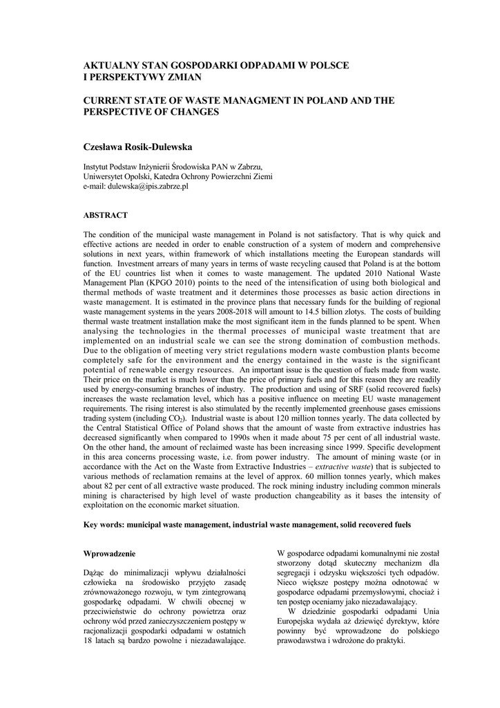 C. Rosik-Dulewska Aktualny stan gospodarki