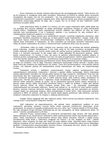 Ekran malowany to bardzo ciekawa alternatywa dla wymagającego klienta. Takie ekrany nie są do kupienia w rozsądnej cenie jako rozwijane. Malowanie na ścianie to jednak spore wyzwania szczególnie dla kogoś, kto nie ma wyobraźni i nie zna podstawowych praw fizyki związanych z nawilżaniem powierzchni i czasem wiązania farb. Kilka dobrych porad oraz dobre przygotowanie do malowania wystarczają jednak do tego, aby z kogoś, kto na co dzień nie jest malarzem zrobić fachowca na jeden dzień. Czas zasychania farby to około 2-3 minuty, po tym czasie malowane obok siebie paski się nie powiążą lecz zaczną nakładać na siebie powodując zgrubienie niosące ze sobą ewentualną zmianę koloru. Dodatkowo warto wypróbować suchym wałkiem tak całkiem na niby ile czasu zajmuje nam pomalowanie 3 lub 4 kolejnych pasków i czy wystarczy to, aby zmieścić się z umieszczaniem kolejnych pasków w 3 minutach. Dobra rada: maluj zawsze przy zamkniętych oknach i wysokiej wilgotności powietrza. Jeśli posiadasz nawilżacz powietrza to włącz go na parę godzin przed malowaniem. Uwaga, mała rolka daje dużo lepsze możliwości równomiernego rozkładania farby jest bardziej ekonomiczna ale jednak dużo wolniejsza w malowaniu. Ja sam wybrałem po pierwszej warstwie malowaną dużą rolką nie byłem zadowolony do końca z równomierności rozłożenia farby oraz jej zużycia. Zmieniłem rolkę na małą i kolejne trzy warstwy były już mozolną ale bardzo dokładną pracą malarską. Uwaga! Pomalowanie 7 m2 małą rolką to nie lada wyzwania szczególnie jeśli trzeba malować szybko i nie można zrobić sobie ani jednej przerwy podczas malowania warstwy. Ekran z 4 metrami szerokości to dla małej rolki z małą zakładką 40 pionowych pasków. Jeden pasek maksymalnie 1,5 minuty a wiec cła praca to godzina nieprzerwanej szybkiej zabawy w malarza prawie wyścigowego. Podłoże musi być nie tylko przygotowane i dobrze zagruntowane ono musi być bardzo dobrze przygotowane i pomalowane farbą która nie przyjmuje wilgoci. Rada producenta dotycząca pomalowania ściany farbą silikonową jest jak najbardziej dobra. Ja tego nie zrobiłem i był to błąd. Pierwsze malowania kosztowało trochę nerwów i bardzo dużo farby która jak wiadomo do najtańszych nie należy. Cena litra porównywalna z ceną bardzo dobrej whisky, nie zalecam jednak pić bezpośrednio przed malowaniem ani farby ani wspomnianego trunku. Trzeźwość umysłu i dokładne rozpoznawanie miejsc właśnie pomalowanych jest najważniejszym elementem malowania i stanowi o jakości efektu końcowego. Warto malowaną ścianę odpowiednio oświetlić nie zawsze jedna lampa do tego wystarczy. Oświetlenie musi być tak skierowane aby bez większego wysiłku odróżnić powierzchnię mokrą od suchej a na tej mokrej mieć możliwość sprawdzenia czy jest w 100% pokryta farbą. Jeśli zrobimy dobre oświetlenie to zobaczymy również grubość farby i będziemy mogli dowałkować wilgotnym wałkiem miejsca, w których farba nałożona została za grubo. Są to przeważnie łączenia dwóch pasów zazwyczaj w górnej części ekrany gdzie zaczynamy przenosić farbę z wałka na podłoże i wałek jest bardzo mocno pokryty farbą. Po pasie możemy jechać kilka razy i go poprawiać uzupełniając niedomalowania lub usuwając nadmiary. Ważne jest jednak to, że musimy to robić bardzo szybko. Musimy również miarowo zaczynać kolejne pasy przemieszczając się tym sposobem po ekranie. Uwaga! Nigdy nie poprawiaj miejsca, które pomalowałeś 5 minut temu. Taka poprawka zostanie widoczna w 98% na zawsze. Jeśli coś nie wyszło lepiej będzie powtórzyć całą warstwę. Lub przy kolejnym malowaniu poprawić to miejsce z większą starannością. Uwaga! Warto oglądnąć film aby zobaczyć paski, które tworzą się podczas malowania. One znikają wraz z wysychaniem kolejnych warstw. Jeśli malujemy na zagruntowanym, ale jednak nieco nasiąkliwym podłożu to przy malowaniu pierwszej warstwy zużycie farby może znacznie przekroczyć planowane przez producenta. W naszym przypadku przekroczyło ono aż o 50%. Na 7 metrów poszło 0,75 litra farby. Na całe szczęście druga warstwa malowała się już tak oszczędnie, że farby ostatecznie zbyło. Te same 7 metrów pomalowalem 0,35 litra. Warstwa finiszu wystarczyłaby na trzykrotne pomalowanie tego ekranu. Nie było jednak takiej potrzeby bo po dwukrotnym malowaniu efekt pomarańczowej skórki jest bardzo jednorodny i pełny. Takie mechaniczne rozwarstwienie ekranu daje efekty wizualne, których z białej ściany pomalowanej białą farbą z castoramy osiągnąć nie można i to bez względu na ilość i jakość pigmentu, który użyjemy do tego aby farba nie była całkiem biała. Zjawiska które mają miejsce podczas projekcji na tym ekranie mogą zachodzić tylko w takim środowisku jakie tworzy odbijające podłoże i transparentna przechwytująca warstwa finiszu. Gratulacje dla tych, którzy na to wpadli. W Kanadzie wymyślono już kilka fajnych rzeczy. Zadowolony klient