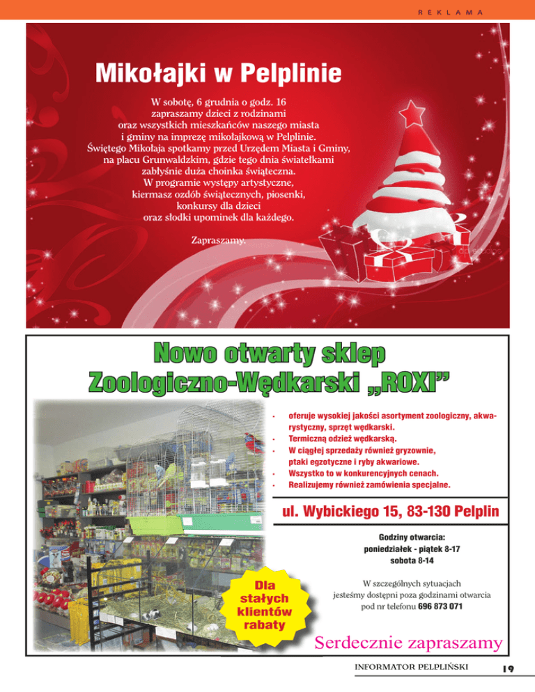 Mikołajki w Pelplinie Nowo otwarty sklep Zoologiczno