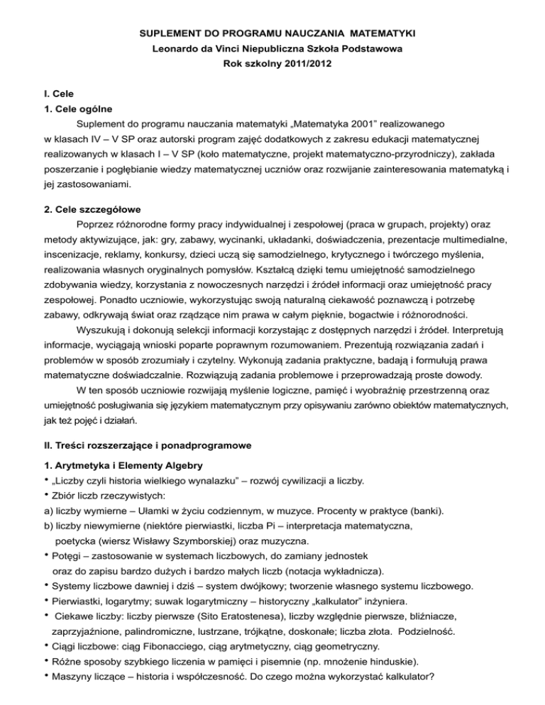 SUPLEMENT DO PROGRAMU NAUCZANIA MATEMATYKI