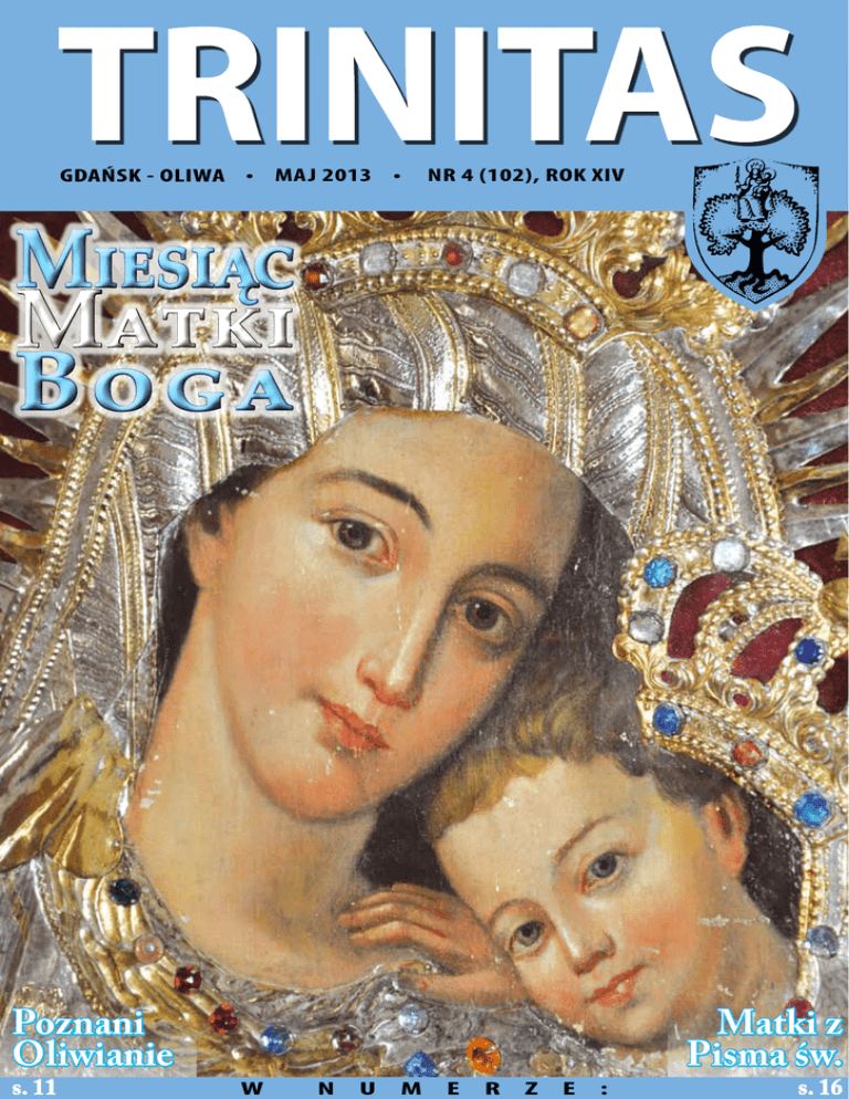 • MAJ 2013 • NR 4 (102), ROK XIV Miesiąc Matki Boga Poznani Oliwianie s. 11 w n u m e r z e : Matki z Pisma św. s. 16 od redakcji Przygotuj się do Liturgii Uroczystość Wniebowstąpnienia Pańskiego, 12 maja: I czytanie: Dz 1,1-11; II czytanie: Ef 1,17-23; Ewangelia: Łk 24,46-53; Uroczystość Zesłania Ducha Świętego, 19 maja: I czytanie: Dz 2,1–11; II czytanie: 1 Kor 12,3b–7.12–13; Ewangelia: J 20,19–23; Uroczystość Najświętszej Trójcy, 26 maja: I czytanie: Prz 8,22-31; II czytanie: Rz 5,1-5; Ewangelia: J 16,12-15; IX Niedziela Zwykła, 2 czerwca: I czytanie: 1 Krl 8,41-43; II czytanie: Ga 1,1-2.6-10; Ewangelia: Łk 7,1-10; X Niedziela Zwykła, 9 czerwca: I czytanie: 1 Krl 17,17-24; II czytanie: Ga 1,11-19; Ewangelia: Łk 7,11-17; Czerwiec Maj intencje apostolstwa modlitwy 2 Intencja ogólna Aby odpowiedzialni za wymiar sprawiedliwości kierowali się zawsze uczciwością i prawym sumieniem. Intencja misyjna Aby seminaria, zwłaszcza Kościołów misyjnych, formowały pasterzy według Serca Chrystusa, całkowicie oddanych głoszeniu Ewangelii. Intencja ogólna Aby przeważała wśród ludów kultura dialogu, słuchania i wzajemnego poszanowania. Intencja misyjna Aby tam, gdzie wpływ sekularyzacji jest silniejszy, wspólnoty chrześcijańskie potrafiły skutecznie prowadzić nową ewangelizację. Trinitas maj 2013 Chwalcie łąki umajone... Któż z nas nie zna wymowy tej pieśni? Świat budzący się do życia po zimowym śnie otrzymuje w tym pięknym miesiącu maju znak w osobie Maryi. Postać Bożej Rodzicielki jest dla całego Kościoła przykładem wiary. Jej matczyna opieka i orędownictwo u Jezusa, Jej Syna, wnosi w nasze światło i życie poczucie bezpieczeństwa - wiemy, że nie zostaliśmy pozostawieni sami sobie, a w Maryi mamy „przedziwną pomoc i obronę”. Z Maryją przychodzi nam przeżywać jedne z ważniejszych wydarzeń w życiu naszej Archikatedralnej Parafii: uroczystość Pierwszej Komunii świętej, jej rocznica, bierzmowanie, odpust – patronalne święto ku czci Trójcy Świętej, wreszcie uroczystość Najświętszego Ciała i Krwi Pańskiej. W tym miesiącu wyruszamy z Feretronem Matki Bożej na szlak 345. Pieszej Pielgrzymki Oliwskiej. Wspomniane uroczystości to radość ich wspólnego świętowania, ale także wielki wysiłek wielu osób. Kończący się rok duszpastersko-katechetyczny jest okazją do podziękowania wszystkim za ten wysiłek i wkład w życie naszej parafialnej rodziny. Mam nadzieję, że bogactwo tych dni trwale zaowocuje w naszym życiu. Ten cykl świąt i ważnych wydarzeń zakończy Dzień Matki, będący kwintesencją maja, miesiąca maryjnego. Naszym kochanym Mamom składamy w darze modlitwę i dziecięcą wdzięczność. Ks. Zbigniew Zieliński Gdańsk-Oliwa, maj 2013 proboszcz Oliwski Feretron Adam Kromer Trinitas maj 2013 3 opaci oliwscy Karol Hohenzollern-Hechingen Opat oliwski 1782-1803 4 Trinitas maj 2013 ? ?? Parafianie pytają Dlaczego Msza Święta w sobotę wieczorem może być traktowana jako niedzielna? Tradycja liturgiczna Kościoła liczy czas podobnie jak czyni to tradycja judaistyczna. Dzień rozpoczyna się poprzedniego dnia wieczorem. Każde świętowanie rozpoczyna się więc wigilią dnia poprzedniego. Niedzielne świętowanie, liturgicznie rozpoczynamy w sobotę wieczorem. Obecne przepisy dotyczące spełnienia obowiązku niedzielnej Mszy św. zawarte są w kanonie 1248 Kodeksu Prawa Kanonicznego. § 1. Nakazowi uczestniczenia we Mszy świętej czyni zadość ten, kto bierze w niej udział, gdziekolwiek jest odprawiana w obrządku katolickim, bądź w sam dzień świąteczny, bądź też wieczorem dnia poprzedzającego <czyli sobota>. Kanon nie wprowadza żadnych zastrzeżeń, że musi to być Msza św. sprawowana według formularza niedzielnego, że muszą być ku temu jakieś racje, np. niemożność uczestniczenia we Mszy św. w samą niedzielę. Tak więc wierny jest tutaj zupełnie wolny w wyborze Mszy św., w której chce uczestniczyć. Jedyny warunek, że musi to być Msza św. w sobotnie popołudnie, nie wcześniej. Masz pytanie dotyczące wiary lub Kościoła, wyślij je na adres e-mai: [email protected]. Postaramy się na nie odpowiedzieć. Trinitas maj 2013 5 6 Trinitas maj 2013 Ja ciebie chrzczę w Imię Ojca i Syna i Ducha Świętego Ślubuję ci miłość, wierność i uczciwość małżeńską… ciąg dalszy na str. 11 Trinitas maj 2013 7 Rodzina Wyszyńskich 8 Trinitas maj 2013 Bazyliszek Zadanie A Rozwiąż krzyżówkę 1. Miesiąc poświęcony Najświętszej Maryi Pannie? 2. …........Galilejska, był tam cud przemiany wody w wino przez Jezusa.? 3. Księga…- między Księgą Sędziów, a I Księgą Samuela w Starego Testamentu? 4. Na cudownym obrazie Matki Boskiej Jasnogórskiej Maryja ma na policzku dwie….? 5. Opiekunem Maryi był? 6. Miejsce, w którym dorastał Jezus pod opieką Maryi? Litery z kratek oznaczonych kropkami, czytane z góry w dół utworzą rozwiązanie. 3. Co żeglarze zrobili z Jonaszem? Podpowiedź - Księga Jonasza Trinitas maj 2013 9 (imię i nazwisko) .............................................................................................................................. 2. Przez ile dni Pan Bóg tworzył świat? Podpowiedź – Księga Rodzaju (rozwiązanie) 1. Ile pokoleń izraelskich wzięło udział w spisie ludności, którego dokonali Mojżesz i Aaron na górze Synaj? Podpowiedź – Księga Liczb .............................................................................................................................. Zagadki – 3 pytania dotyczące treści Pisma Świętego Starego Testamentu Bazyliszek nr IV/2013 Zadanie B Rozwiąż zagadki - - - - - - - - - - - - - - - - - - - - - - - - - - - - - - - - Rozwiąż zadania A i B, wpisz prawidłową odpowiedź zadania B, a kupon przynieś do kościoła. Losowanie nagród 2 czerwca podczas Mszy św. o godz. 10.30 w kościele św. Jakuba. oliwskie korzenie św. Bernard nawet p