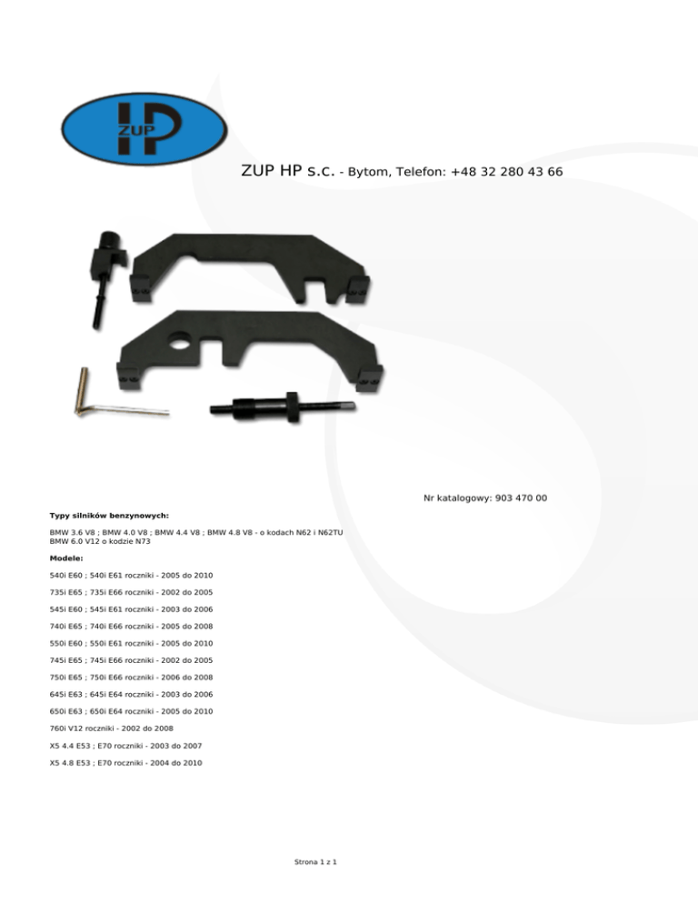 ZUP HP s.c. - Bytom, Telefon: +48 32 280 43 66 Nr katalogowy: 903 470 00 Typy silników benzynowych: BMW 3.6 V8 ; BMW 4.0 V8 ; BMW 4.4 V8 ; BMW 4.8 V8 - o kodach N62 i N62TU BMW 6.0 V12 o kodzie N73 Modele: 540i E60 ; 540i E61 roczniki - 2005 do 2010 735i E65 ; 735i E66 roczniki - 2002 do 2005 545i E60 ; 545i E61 roczniki - 2003 do 2006 740i E65 ; 740i E66 roczniki - 2005 do 2008 550i E60 ; 550i E61 roczniki - 2005 do 2010 745i E65 ; 745i E66 roczniki - 2002 do 2005 750i E65 ; 750i E66 roczniki - 2006 do 2008 645i E63 ; 645i E64 roczniki - 2003 do 2006 650i E63 ; 650i E64 roczniki - 2005 do 2010 760i V12 roczniki - 2002 do 2008 X5 4.4 E53 ; E70 roczniki - 2003 do 2007 X5 4.8 E53 ; E70 roczniki - 2004 do 2010 Strona 1 z 1