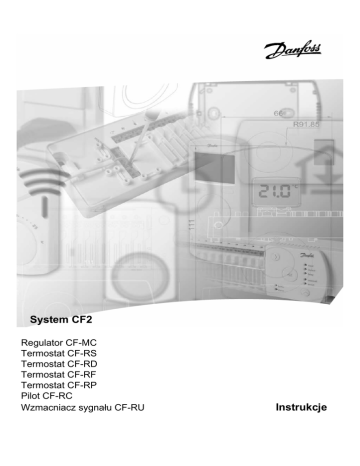 System CF2 Regulator CF-MC Termostat CF-RS Termostat CF-RD Termostat CF-RF Termostat CF-RP Pilot CF-RC Wzmacniacz sygnału CF-RU Instrukcje Installation · CF2 1. 2. 3. 4. 5. 6. 7. 8. 9. ch2 ch4 ch1 ch3 x1 10. 11. 21.0 °c 21.0°c x1 ch4 VI.SP.A1.00 Produced by Danfoss Floor Heating Hydronics 06.2007 x1 (= ch2) x2 (= ch3) x3 (= ch4) A B x1 x5 21.0°c 21.0°c 12.A A x1 13.A 14.A 21.0°c 12.B 13.B 21.0°c x1 B x5 x1 21.0°c 15.B 14.B 21.0°c 16.B UNInstallation · CF2 1. 2. 3. ch2 ch4 ch1 ch3 x1 (= ch2) x2 (= ch3) x3 (= ch4) 4. 5. 6. ch4 21.0°c x1 VI.SP.A1.00 Produced by Danfoss Floor Heating Hydronics 06.2007 x5 Instrukcja obsługi regulatora CF-MC PL Spis treści 1. Wstęp.................................................................................................... 46 2. Elementy systemu CF2 – rys. 1............................................................ 46 3. Przegląd funkcji – rys. 2...................................................................... 46 4. Montaż.................................................................................................. 46 4.1 Na ścianie....................................................................................................................................46 4.2 Na szynie DIN.............................................................................................................................46 5. Procedura instalacji (sekwencyjna)................................................... 47 5.1 Siłowniki termiczne 24V.........................................................................................................47 5.2 Przekaźniki dla systemu sterowania pompy i kotła.....................................................47 5.3 Wejście czuwania......................................................................................................................47 5.4 Wejście dla ogrzewania i chłodzenia.................................................................................47 5.5 Schemat elektryczny...............................................................................................................48 5.6 Zasilanie.......................................................................................................................................48 5.7 Antena zewnętrzna (CF-EA)..................................................................................................48 5.8 Większa liczba (2-3) regulatorów........................................................................................48 5.9 Inne elementy systemu..........................................................................................................48 5.10 Test transmisji (test połączenia)........................................................................................48 6. Konfiguracja......................................................................................... 49 6.1 Wyjścia na siłowniki . ..............................................................................................................49 6.2 Przekaźniki dla systemu sterowania pompy i kotła.....................................................49 6.3 Wejście dla czuwania oraz pompy i kotła........................................................................50 6.4 Przekaźniki dla większej liczby (2-3) regulatorów........................................................50 7. Wymiana / resetowanie regulatora.................................................... 50 7.1 Kiedy?...........................................................................................................................................50 7.2 Jak?................................................................................................................................................50 8. Specyfikacje......................................................................................... 51 9. Usuwanie usterek................................................................................ 52 10. Rysunki ........................................................................................... A-B VI.UH.K6.1C Wyprodukowane przez Danfoss Floor Heating Hydronics 03.2007 45 PL Instrukcja obsługi regulatora CF-MC 1. Wstęp • Regulator CF-MC jest częścią innowacyjnego bezprzewodowego systemu sterowania ogrzewaniem podłogowym CF2 firmy Danfoss. System ten wykorzystuje technologię dwustronnej komunikacji bezprzewodowej CF2, dzięki czemu zapew- nia on wysokie bezpieczeństwo transmisji, łatwy montaż bezprzewodowy, szeroki zakres regulacji temperatury w poszczególnych pomieszczeniach oraz optymalny komfort i zwiększoną wydajność energetyczną. • System oferuje szeroki zakres przydatnych funkcji oraz łatwo dostępnych aplikacji. System oferuje dzięki regulatorowi CF-MC z wyjściami zabezpieczonymi przed zwarciem, regulację Wł./Wył. lub za pomocą zasady modulacji szerokości impulsu (PWM), funkcję czuwania, oddzielne przekaźniki do sterowania pompą i kotłem, program samosprawdzający oraz wyświetlanie błędów, możliwość wykonania testu transmisji bezprzewodowej (połączenia) dla każdego rodzaju termostatu pomieszczenia, łatwy bezprzewodowy dostęp do systemu oraz rozszerzoną funkcjonalność przy użyciu opcjonalnego pilota oraz wzmacniacza sygnału w celu zwiększenia zasięgu komunikacji bezprzewodowej systemu. 2. Elementy systemu CF2 – rys. 1 a) Regulator, CF-MC b) Termostaty Ścienne, CF-RS, -RP, -RD i -RF c) Pilot, CF-RC d) Wzmacniacz sygnału, CF-RU e) Antena zewnętrzna, CF-EA 3. Przegląd funkcji – rys. 2 Przycisk wyboru menu Diody menu Przycisk wyboru wyjścia i konfiguracji Przycisk OK Diody poszczególnych wyjść Miejsce na kable podłączeniowe Przekaźniki pompy i kotła Wejście ogrzewania/chłodzenia (zewnętrzny wyłącznik) Wejście czuwania (8°C) (zewnętrzny wyłącznik) Zasilanie (230V) Zaczep przedniej pokrywy Złącze anteny zewnętrznej 4. Montaż 4.1 Na ścianie • Zdjąć przed