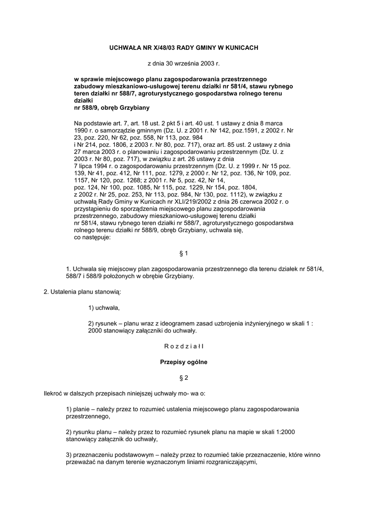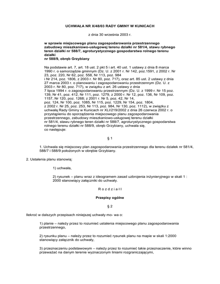 UCHWAŁA NR X/48/03 RADY GMINY W KUNICACH z dnia 30