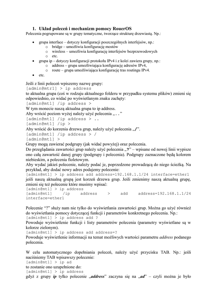 1. Układ poleceń i mechanizm pomocy RouerOS
