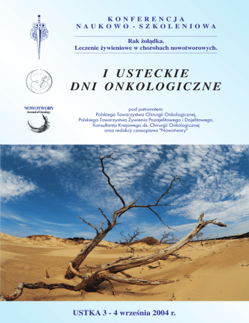 KONFERENCJA N A U K O W O - S Z K O L E N I O WA Rak żołądka. Leczenie żywieniowe w chorobach nowotworowych. I USTECKIE DNI ONKOLOGICZNE pod patronatem: Polskiego Towarzystwa Chirurgii Onkologicznej, Polskiego Towarzystwa Żywienia Pozajelitowego i Dojelitowego, Konsultanta Krajowego ds. Chirurgii Onkologicznej oraz redakcji czasopisma "Nowotwory" USTKA 3 - 4 września 2004 r. Drogie Koleżanki i Koledzy! W maju 2002 roku odbył się VIII Zjazd Polskiego Towarzystwa Chirurgii Onkologicznej. Przebieg Zjazdu, zwłaszcza jego organizacja i lokalizacja zyskały bardzo dobrą opinię uczestników. W związku z tym Zarząd Polskiego Towarzystwa Chirurgii Onkologicznej oraz Polskiego Towarzystwa Żywienia Pozajelitowego i Dojelitowego postanowił zorganizować w tym samym miejscu coroczne konferencje naukowe pn. "Usteckie dni onkologiczne" Pierwsza konferencja odbędzie się w dniach 3 - 4 września 2004 roku pod patronatem Polskiego Towarzystwa Chirurgii Onkologicznej, Polskiego Towarzystwa Żywienia Pozajelitowego i Dojelitowego, Konsultanta Krajowego ds. Chirurgii Onkologicznej oraz redakcji czasopisma "Nowotwory". Konferencja poświęcona będzie problemom rozpoznawania i leczenia raka żołądka oraz leczenia żywieniowego w chorobach nowotworowych. Przewidziane są wykłady wybitnych polskich specjalistów w tych dziedzinach. Mam zaszczyt zaprosić Państwa do uczestnictwa w Konferencji. Przewodniczący Komitetu Organizacyjnego Dr n. med. Zoran Stojčev Patronat honorowy: Dr Marek Balicki - Minister Zdrowia Cezary Dąbrowski - Wojewoda Pomorski Maciej Kobyliński - Prezydent Miasta Słupska Jacek Graczyk - Burmistrz Miasta Ustki Goście honorowi: Jan Kozłowski - Marszałek Województwa Pomorskiego Bogdan Borusewicz - Wicemarszałek Województwa Pomorskiego Zdzisław Kołodziejski - Starosta Powiatu Słupskiego Dr Tadeusz Podczarski - Dyrektor Departamentu Zdrowia Urzędu Marszałkowskiego w Gdańsku Jan Kurylczyk - Sekretarz Stanu Ministerstwa Infrastruktury Jerzy Mazurek - Podsekretarz Stanu M.S.W.i A. Kmdr Ryszard Filiński - Komendant Centrum Szkolenia Marynarki Wojennej w Ustce Anna Bogucka - Skowrońska - Przewodnicząca Rady Miasta Słupska Jan Olech - Przewodniczący Rady Miasta Ustka Komitet naukowy: Prof. dr hab. n. med. Andrzej Szawłowski Prof. dr hab. n. med. Bruno Szczygieł Dr hab. n. med. Marek Pertkiewicz Prof. dr hab. n. med. Janusz Jaśkiewicz Prof. dr hab. n. med. Andrzej Kopacz Prof. dr hab. n. med. Paweł Murawa Prof. dr hab. n. med. Tadeusz Popiela Prof. dr hab. n. med. Edward Towpik Prof. dr hab. n. med. Grzegorz Wallner Komitet organizacyjny: Oddział Chirurgii Onkologicznej i Chorób Piersi Wojewódzkiego Szpitala Specjalistycznego w Słupsku Dr n. med. Zoran Stojčev Lek. med. Maciej Pasieka Lek. med. Taras Stetsko Lek. med. Krystian Oliński Lek. med. Janusz Grzybowski Dr n. med. Wojciech Homenda mgr Elżbieta Wach -4- I USTECKIE DNI ONKOLOGICZNE Miejsca i daty: • Konferencja odbywa się w dniach: 3 - 4 września 2004 r. • Inauguracja Konferencji i Sesje Naukowe odbędą się w Centrum Szkoleniowo - Wypoczynkowym "Energetyk" • 03 09 2004 r. - Piątek godz. 15.00 - Przyjazd i zakwaterowanie godz. 18.00 - Wycieczka statkiem - na statku degustacja win macedońskich godz. 20.00 - Piknik - Centrum Szkoleniowo - Wypoczynkowe "Energetyk" • 04 09 2004 r. - Sobota godz. 8.30 - Inauguracja Konferencji - Centrum Szkoleniowo - Wypoczynkowe "Energetyk" godz. 9.00 - Sesja Naukowa I - Centrum Szkoleniowo - Wypoczynkowe "Energetyk" godz. 13.00 - Obiad - Centrum Szkoleniowo - Wypoczynkowe "Energetyk" godz. 15.00 - Sesja Naukowa II - Centrum Szkoleniowo - Wypoczynkowe "Energetyk" godz. 19.00 - Bankiet - Centrum Szkoleniowo - Wypoczynkowe "Energetyk" • 05 09 2004 r. - Niedziela godz. 9.00 - Śniadanie - Centrum Szkoleniowo - Wypoczynkowe "Energetyk" po śniadaniu wyjazd uczestników • Istnieje możliwość zarówno wcześniejszego przyjazdu jak i późniejszego wyjazdu, po wcześniejszej rezerwacji noclegów • Istnieje możliwość wykupienia obiadów w cenie 35,00 zł • w czasie trwania zjazdu w Słupsku odbywa się Festiwal Pianistyki Polskiej - istnieje możliwość zakupu biletów na koncerty dla osób zainteresowanych. Zabezpieczenie zdrowotne: Niepubliczny ZOZ w Ustce Dr-a Janusza Grzybowskiego Rejestracja: Sekretariat Zjazdu czynny będzie w Centrum Szkoleniowo - Wypoczynkowym "Energetyk" Piątek - 03 09 2004 r - od godz. 15.00 Sobota - 04 09 2004 r - od godz 8.00 do 12.00 Identyfikatory Uczestnicy Zjazdu, którzy opłacili wpisowe i zaproszeni goście otrzymają imienne identyfikatory uprawniające do wstępu do sali, gdzie będą odbywać się sesje naukowe i do sal ze stoiskami firm. Adres Komitetu Organizacyjnego: Oddział Chirurgii Onkologicznej i Chorób Piersi Wojewódzki Szpital Specjalistyczny w Słupsku ul. Kopernika 28, 76-200 Słupsk, tel. 059 / 842 95 35, e-mail: [email protected] Opłata zjazdowa: Po 01.07.2004 r. - 300,00 zł. dla wszystkich uczestników. Uroczysta Kolacja - 160,00 zł. Opłaty hotelowe: Hotel"Energetyk" Nowa część: 160,00 zł za nocleg w pokoju 1-osobowym, ze śniadaniem 200,00 zł za pokój 2-osobowy, ze śniadaniem Domki: 300,00 zł za domek "Jantar": 115,00 zł w 1-osobowym, ze śniadaniem 75,00 zł. w 2-osobowy, ze śniadaniem K O N F E R E N C J A N A U K O W O - S Z K O L E N I O WA Rak żołądka. Leczenie żywieniowe w chorobach nowotworowych. -5- Program spotkania: 4. IX. 2004 r. - Sobota 8.30 – 9.30 Inauguracja Konferencji •Prowadzenie - Krystyna Danilecka - Wojewódzka •Powitanie uczestników: Dr med. Zoran STOJČEV - Przewodniczący Komitetu Organizacyjnego •Wystąpienia: 1. Dr Marek Balicki - Minister Zdrowia 2. Cezary Dąbrowski - Wojewoda Pomorski 3. Jan Kozłowski - Marszałek Województwa Pomorskiego 4. Maciej Kobyliński - Prezydent Miasta Słupska 5. Jacek Graczyk - Burmistrz Miasta Ustki 6. Prof. dr hab. med. Andrzej SZAWŁOWSKI - Konsultant Krajowy w dziedzinie chirurgii onkologicznej 9.30