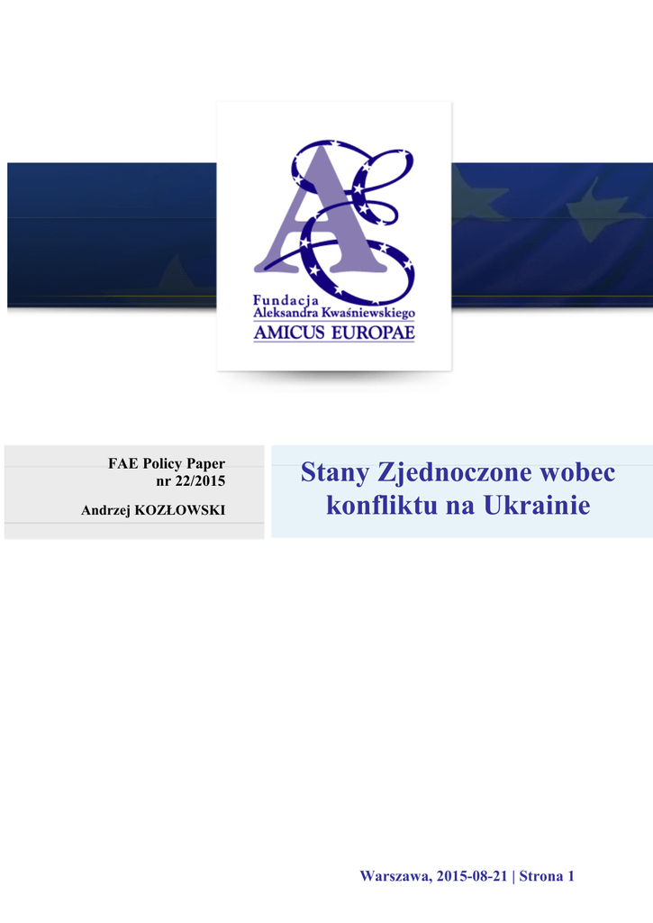 FAE Policy Paper nr 22/2015 Andrzej KOZŁOWSKI Stany Zjednoczone wobec konfliktu na Ukrainie Afganistan Warszawa, 2015-08-21 | Strona 1 Stany Zjednoczone wobec konfliktu na Ukrainie FAE Policy Paper nr 22/2015 Andrzej Kozłowski Konflikt na Ukrainie jest najpoważniejszym wyzwaniem przed jakim stanęła administracja Baracka Obamy. Wojna w Europie – kontynencie, który był traktowany przez Amerykanów jako stabilny, zaskoczyła wielu. Stawką w niej jest nie tylko przyszłość państwa ukraińskiego, ale również wiarygodność Stanów Zjednoczonych, spoistość NATO oraz kształt architektury bezpieczeństwa europejskiego. Niestety to najpoważniejsze wyzwanie dla administracji pierwszego czarnoskórego przywódcy zostało w dużej mierze spowodowane poprzez jego błędne założenia i nieudolne działania w polityce zagranicznej. Amerykańskie „Grand Strategy” Amerykanie bardzo często formułują główne założenia strategiczne swojej polityki zagranicznej i bezpieczeństwa w ramach doktryny, której nazwa najczęściej pochodzi od nazwiska danego prezydenta. Mieliśmy w przeszłości doktrynę Trumana, Eisenhowera, Reagana, Busha a teraz mamy do czynienia z doktryną Baracka Obamy. Jego pomysły na prowadzenie polityki zagranicznej zostały przedstawione jeszcze przed wyborami prezydenckimi na łamach prestiżowego „Foreign Affairs”. Zakładano zmniejszenie odpowiedzialności Stanów Zjednoczonych za świat, wyrażając nadzieje, że inne mocarstwa wezmą na siebie większe zobowiązania. Stany Zjednoczone miały skupić się na rejonie Azji i Pacyfiku. Zapowiadano również nawiązanie bliższego dialogu z państwami zrzeszonymi w grupie BRICS. Te teoretyczne rozważania zostały przeniesione do amerykańskiej Narodowej Strategii Bezpieczeństwa z 2010 roku, znalazły również odzwierciedlenie w działaniach dyplomacji prezydenta Baracka Obamy. Zmniejszając zaangażowanie Polityka zagraniczna nowej administracji została oparta na założeniu, że Stany Zjednoczone nie mogę dłużej pozwolić sobie na branie odpowiedzialności za cały świat i należy skupić się na regionach istotnych z punktu widzenia interesu narodowego Stanów Zjednoczonych. Założenie to wynikało ze zmniejszania się amerykańskich wpływów na świecie, osłabienia gospodarki przez kryzys gospodarczy z 2008 roku oraz zmęczenia społeczeństwa wojnami w Iraku i Afganistanie. Regionem, do którego przywiązywano szczególną uwagę, była Azja Południowo-Wschodnia, gdzie przemieszczano główne siły wojskowe, a aktywność dyplomatyczna USA była największa. Przegranym tej koncepcji Warszawa, 2015-08-21 | Strona 2 Stany Zjednoczone wobec konfliktu na Ukrainie FAE Policy Paper nr 22/2015 Andrzej Kozłowski została Europa, traktowana przez Amerykanów jako stabilny kontynent, któremu nic nie zagraża, a wszelkie problemy powinny być rozwiązywane przez UE i najpotężniejsze państwa Starego Kontynentu. Innym regionem, odczuwającym zmniejszone zainteresowanie ze strony Stanów Zjednoczonych, stał się Bliski Wschód. Kiedy wybuchły tam zamieszki „arabskiej wiosny”, obejmujące stopniowo kolejne kraje, Stany Zjednoczone stały z boku, starając się nie angażować. Symboliczne znaczenie miała tutaj operacja NATO w Libii, w której to główną rolę odgrywały Francja i Wielka Brytania. Po raz pierwszy w historii NATO, USA znajdowały się w drugim szeregu. Reset z Rosją Jednym z najbardziej przełomowych, ale również kontrowersyjnych pomysłów, była naprawa stosunków z Rosją. Odbyło się to poprzez symboliczne wciśnięcie przycisku „reset” przez sekretarz stanu Hillary Clinton i rosyjskiego ministra spraw zagranicznych Siergieja Ławrowa. Należy dodać, że w momencie objęcia urzędu prezydenta USA przez prezydenta Obamę, relacje rosyjsko-amerykańskie były najgorsze od czasów zakończenia zimnej wojny, do czego przyczyniła się agresja Rosji na Gruzję w 2008 roku. Prezydent Obama nie miał jednak skrupułów, żeby poświęcić euroatlantyckie aspiracje tego kraju w celu poprawy stosunków z włodarzami na Kremlu. Należy dodać, że podobny los spotkał elementy planowanego systemu antyrakietowego w Polsce. Obama swoją decyzję oznajmił 17 września 2009 roku w rocznicę wkroczenia wojsk sowieckich do Polski, co było poważną dyplomatyczną gafą. Reset przyniósł zdecydowanie więcej korzyści stronie rosyjskiej. Udało się podpisać traktat rozbrojeniowy START, na mocy którego Rosja i USA zobowiązały się do redukcji swoich arsenałów nuklearnych. Pozwalało to Rosjanom na zachowanie twarzy i poczucie, że jeśli chodzi o zbrojenia nuklearne są cały czas na tym samym poziomie, co Amerykanie. Rosja również została przyjęta do WTO i to mimo sprzeciwu Gruzji, która po naciskach amerykańskich zmieniła zdanie. Zyski Stanów Zjednoczonych były zdecydowanie mniejsze: uzyskano wsparcie dla operacji NATO w Afganistanie, która tak czy siak leżała w rosyjskim interesie, angażując odłamy radykalnych muzułmanów z byłego terytorium postradzieckiego, zagrażające potencjalnie samej Rosji. Udało się również uzyskać rosyjskie wsparcie dla sankcji przeciw Warszawa, 2015-08-21 | Strona 3 Stany Zjednoczone wobec konfliktu na Ukrainie FAE Policy Paper nr 22/2015 Andrzej Kozłowski Iranowi. Widać wyraźnie, że Rosji reset ten opłacał się zdecydowanie bardziej niż Stanom Zjednoczonym. Nie można jednak zapominać, że mimo deklarowanego polepszenia stosunków, Rosja cały czas prowadziła bardzo agresywną politykę, corocznie zwiększała wydatki na zbrojenia, organizowała symulację ataku nuklearnego na Warszawę oraz inwazję na państwa bałtyckie, wreszcie aktywnie wspierała reżim Baszara al-Assada w Syrii. Pierwsze rysy na „resecie” pojawiły się wraz z ponownym objęciem prezydentury przez Władimira Putina. Wzmocnieniu uległa antyamerykańska retoryka, a otwarte wsparcie (w tym w postaci doradców wojskowych i nowoczes