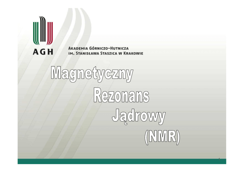1 NMR – Nuclear Magnetic Resonance Co to jest? Spektroskopia NMR – ang. Nuclear Magnetic Resonance Spektroskopia Magnetycznego Rezonansu Jądrowego (MRJ) Wykorzystuje własności magnetyczne jąder atomowych Spektroskopia ta polega na wzbudzaniu spinów jądrowych znajdujących się w zewnętrznym polu magnetycznym a następnie rejestrację promieniowania elektromagnetycznego powstającego na skutek zjawisk relaksacji. Relaksacja jest to powrót układu spinów jądrowych do stanu równowagi termodynamicznej. Trochę historii: odkrycie NMR 1945/46 Odkrycie zjawiska NMR w fazie skondensowanej Felix Bloch Edward Purcell Nobel z fizyki 1952 r. Trochę historii cd. 1953 Pierwszy sygnał NMR w Polsce Andrzej Hrynkiewicz Jacek Hennel 2DFT 1966 Metoda Transformaty Fouriera 1974 Spektroskopia wielowymiarowa Richard Ernst Nobel z chemii 1991 Trochę historii cd. 1976 Metoda badania struktury białek Nobel z chemii 2002 Kurt Wüthrich Nobel z medycyny 2003 "for their discoveries concerning magnetic resonance imaging" Paul C. Lauterbur Sir Peter Mansfield Model atomu Bohra Bohr przyjął załoŜenie o istnieniu w atomach jedynie ściśle określonych orbit elektronowych zwanych dozwolonymi lub stacjonarnymi. Orbity stacjonarne to specjalne orbity wokół jądra, na których elektrony poruszają się bez utraty energii Mechanika kwantowa Równanie Schrödingera dla atomu wodoru Energia elektronu w atomie wodoru n – główna liczba kwantowa Mechanika kwantowa Dopuszczalne wartości momentu pędu elektronu I – poboczna (orbitalna) liczba kwantowa która przybiera wartości l= 0,1,2,..,n-1 Wartościom liczby kwantowej przypisujemy symbole literowe: l=0 symbol s, l=1 symbol p, l=2 symbol d itd. Mechanika kwantowa Dopuszczalne wartości składowej Mz wektora momentu pędu elektronu h Mz = m 2π m – magnetyczna Przyjmuje wartości od –l do l. liczba kwantowa. KaŜdej kombinacji trzech liczb kwantowych: n, l i m odpowiada jedna tzw. porządna funkcja falowa będąca rozwiązaniem równania Schrödingera. Funkcje takie nazywamy orbitalami. Mechanika kwantowa W 1928 Dirac stwierdził, Ŝe do prawidłowego opisu zachowania elektronu w atomie konieczne jest wprowadzenie wielkości zwanej spinem. Po uwzględnieniu spinu otrzymujemy tzw. spinorbitale Spinowy moment pędu elektronu wyraŜa się wzorem: σ = h s ( s + 1) s – spinowa liczba kwantowa. Przyjmuje wartość 1/2 σz = msh/2π π Składowa zetowa spinowego momentu pędu moŜe przyjmować wartości +1/2 i – 1/2 Spin elektronowy Co to takiego jest spin? Modelowo moŜna sobie wyobrazić jako wirowanie „kulki elektronu” wokół własnej osi. Elektron krąŜąc po orbicie wokół jądra jednocześnie zachowuje się jak bąk wirujący wokół własnej osi. Temu wirowaniu odpowiada realny, mierzalny doświadczalnie, wektor momentu pędu zwany spinem. Wielkość ta nie ma odpowiednika w mechanice klasycznej. WyraŜa się w jednostkach momentu pędu. Spin elektronowy Wirowanie naładowanej kulki moŜna porównać z przepływem prądu elektrycznego w kołowej pętli przewodnika. Taki ruch ładunku (ujemnie naładowana kulka) wywołuje powstanie momentu magnetycznego, którego wektor skierowany jest przeciwnie do wektora momentu pędu. Spin elektronowy CO TO JEST MAGNES? µe µL elektrony krąŜą wokół atomu orbitalny moment magnetyczny µ e = l (l + 1) µ B µS własny ruch elektronu (spin) spinowy moment magnetyczny µ s = 2 s ( s + 1) µ B Moment magnetyczny atomu to suma jego momentów magnetycznych orbitalnych i spinowych Spin elektronowy W wypełnionych powłokach elektronowych wszystkie spinowe i orbitalne momenty pędu i momenty magnetyczne są skompensowane i wypadkowy moment magnetyczny jest równy zeru – molekuły diamagnetyczne. JeŜeli molekuła ma kilka niesparowanych elektronów to ich momenty pędu oraz momenty magnetyczne sumują się wektorowo dając wypadkowy moment pędu J = L + S. J – Kwantowa liczba całkowitego momentu pędu wszystkich elektronów, L – wypadkowy orbitalny moment pędu i S – wypadkowy spinowy moment pędu– sprzęŜenie LS. Wpadkowemu momentowi pędu towarzyszy wypadkowy moment magnetyczny - MJ Bez działania pola magnetycznego spiny są rozłoŜone bezładnie Spin elektronowy W zewnętrznym polu magnetycznym następuje przestrzenne kwantowanie całkowitego momentu pędu w ten sposób, Ŝe kwantowa liczba magnetyczna MJ moŜe przybierać wartości: MJ=J, J-1, J-2, …-J+1, -J czyli 2J+1 moŜliwych wartości. Spin elektronowy Spin elektronowy Spin elektronowy Spin elektronowy KaŜda z tych orientacji ma inną energię oddziaływania trwałego momentu magnetycznego z zewnętrznym polem magnetycznym. Energia oddziaływania magnetycznego jest proporcjonalna do indukcji B0 zewnętrznego pola magnetycznego i wynosi: Emagn=MJgµBB0 Energia ta jest więc skwantowana. W zewnętrznym polu magnetycznym zerowa energia momentów magnetycznych rozszczepia się na 2J+1 równoodległych poziomów energetycznych przy czym odstęp sąsiadujących poziomów: ∆E = gµBB0 To rozszczepienie poziomów energetycznych w polu magnetycznym nazywa się zjawiskiem Zeemana Spin jądrowy Podobnie do elektronu, równieŜ proton moŜna rozpatrzeć jako dodatnio naładowana kulkę wirującą wokół własnej osi, co oznacza pojawienie się spinowego momentu pędu czyli spinu jądrowego. h I = I ( I + 1) 2π Kwantowa liczba spinowa protonu I=½ Wirowanie naładowanej dodatnio kulki protonu powstanie wektora momentu magnetycznego µΙ. wywołuje Spin jądrowy Jądra zbudowane są z protonów i neutronów. Neutron, choć jest cząstką nienaładowaną teŜ ma moment pędu czyli spin o liczbie kwantowej I=1/2. Podobnie jak w przypadku elektronów, równieŜ w przypadku jąder następuje sumowanie momentów pędu i momentów magnetycznych protonów i neutronów co moŜe doprowadzić do ich całkowitej kompensacji. Dzieje się tak w izotopach o parzystych liczbach protonów i neutronów czyli w tzw. jądrach parzystoparzystych. W pr