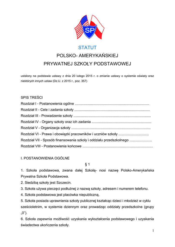 Statut - Polsko - Amerykańskie Szkoły Prywatne w Szczecinie
