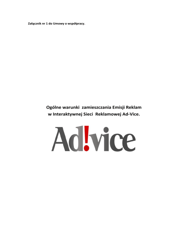 Pobierz ogólne warunki zamieszczania emisji reklam w - Ad-Vice