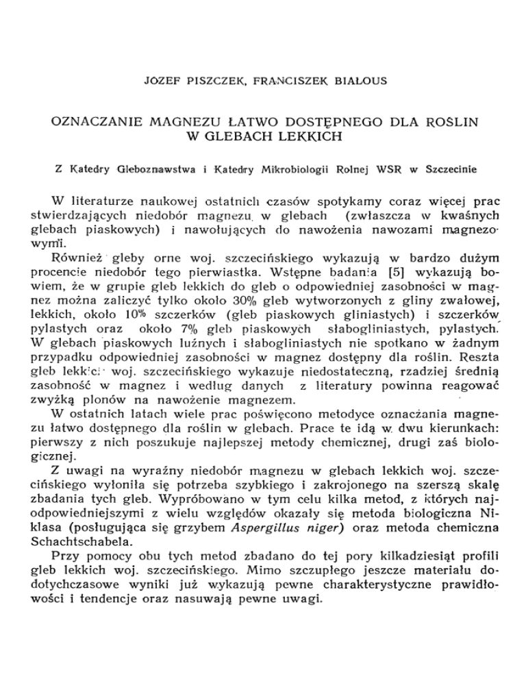 OZNACZANIE MAGNEZU ŁATWO DOSTĘPNEGO DLA ROŚLIN W