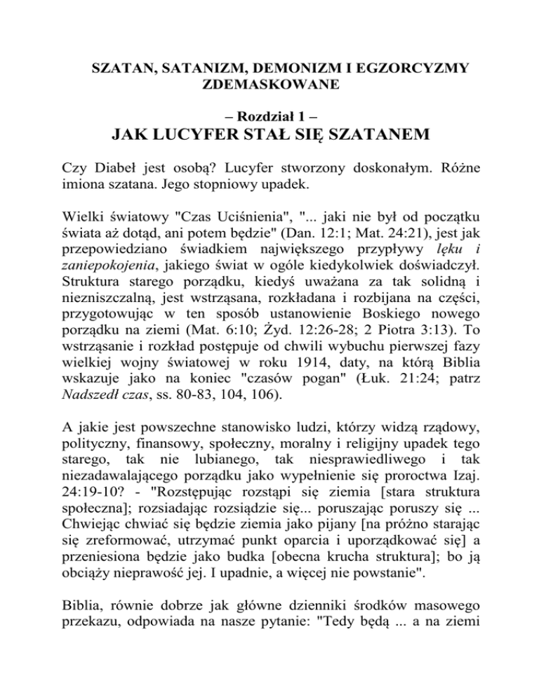 SZATAN, SATANIZM, DEMONIZM I EGZORCYZMY