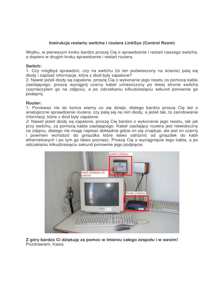 Instrukcja restartu switcha i routera LinkSys (Control Room) Wojtku