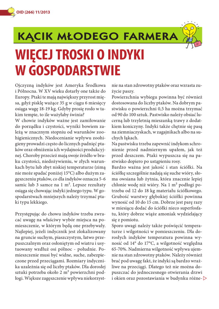 WIĘCEJ TROSKI O INDYKI W GOSPODARSTWIE