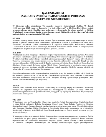 KALENDARIUM ZAGŁADY śYDÓW TARNOWSKICH PODCZAS