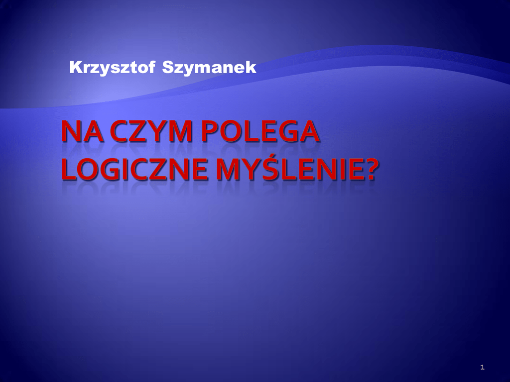 Krzysztof Szymanek 1 Słowo „logika” pochodzi z greckiego λόγος (logos) = słowo, język, racja, rozum, myśl, teza λογικός (logikos) = rozumny, rozsądny 2 „W twoim postępowaniu nie ma logiki” „Te wydarzenia miały swoją wewnętrzną logikę” „Sama logika wojny podpowiadała, że teraz wróg przejdzie do kontrataku” „Woda nie może płynąć pod górę – to chyba logiczne?” „Weź to na logikę ” 3 4 Przedmiot badań: rozumowania Cel badań: znaleźć kryteria odróżniające rozumowanie dobre od złego 5 Nie zajmuje się ustalaniem co jest, a co nie jest prawdą. Logika jest tylko narzędziem poszukiwania prawdy. 6 7 8 9 A: Czy smakowała Panu zupa, którą ugotowałam? B: Moja żona dodaje do potraw mniej soli. 10 Dane Dane Dane ODPOWIEDŹ NA PYTANIE 11 Wnioskowanie PROCES MYŚLOWY PRZESŁANKI WNIOSEK 12 Przesłanka I: Henryk ma 81 lat Przesłanka II: Narzeczona Henryka ma 23 lata --------------------------------------Wniosek: Henryk jest osobą zamożną 13 Przesłanki + wniosek 14 1. 2. 3. Twierdzenia, które uważamy za prawdziwe (fałszywe) Twierdzenia, które uważamy za mniej lub bardziej prawdopodobne Twierdzenia tylko założone, co do których nie mamy wyrobionego zdania Twierdzenia, które zamierzamy badać (hipotezy) 15 Z tego, że Jan jest kawalerem wynika, że Jan nie jest żonaty. 16 Z tego, że Jan nie jest żonaty nie wynika, że Jan jest kawalerem. 17 Z tego, że Jan urodził się w styczniu wynika, że Jan urodził się w zimie. Z tego, że Jan urodził się w zimie nie wynika, że Jan urodził się w styczniu. 18 Jan jest starszy od Piotra Piotr jest starszy od Zofii --------------------------------------Jan jest starszy od Zofii 19 Jan świadomie i dobrowolnie popełnił zły uczynek. ----------------------------------------------------Jan powinien być ukarany. 20 Jan kocha Kasię ----------------------Jan szanuje Kasię 21 Dekalog jednoznacznie zakazuje zabijania ----------------------------------------------------Służba wojskowa jest niemoralna 22 Osobowość człowieka jest ściśle zdeterminowana przez jego kod genetyczny ------------------------------------------------------------Człowiek nie odpowiada za swoje czyny 23 W przyrodzie panuje bezwzględna walka o przetrwanie; wygrywają tę walkę najsilniejsi i tylko oni przeżywają - słabsi muszą zginąć. ---------------------------------------------------------Zdrowa moralność powinna uznawać prawo silniejszego do eliminowania słabszych. 24 Średni poziom inteligencji Murzynów jest niższy niż białych. ---------------------------------------------------------Słuszne jest ograniczanie Murzynom dostępu do zawodów wymagających wysokiej inteligencji. 25 Większość ludzi umiera w łóżku ------------------------------------------------------------Unikając leżenia w łóżku przedłużysz sobie życie 26 Pięciu robotników wnosi fortepian na piąte piętro w ciągu 1 godziny ---------------------------------------------------------------Jednemu robotnikowi zajmie to 5 godzin. 27 ARYSTOTELES 384-322 przed Chr. 28 Każdy trujec jest magulem Każdy magul jest farfoniem ------------------------------------ 29 Każdy trujec jest magulem Każdy magul jest farfoniem -----------------------------------Każdy trujec jest farfoniem 30 Każdy trujec jest magulem Każdy magul jest farfoniem -----------------------------------Każdy trujec jest farfoniem 31 Każde A jest B Każde B jest C -----------------------------------Każde A jest C 32 p lub q nieprawda, że p -----------------------------------q 33 każdy żaden niektóry nieprawda, że… …i… (…a…; …ale…; …oraz…) …lub… jeśli…, to … 34 p q p -------q Jeśli p, to q p q 35 p q q -------p Jeśli p, to q Nieprawda, że q Nieprawda, że p 36 p (q r) Jeśli p, to: q lub r Nieprawda, że q q ----------r p Jeśli nieprawda, że r, to nieprawda, że p 37 Jeśli Jan jest zdolniejszy od Piotra, a Piotr ma lepsze wyniki w nauce, to Jan mógłby uczyć się pilniej. Piotr ma lepsze wyniki w nauce, a Jan nie mógłby uczyć się pilniej -----------------------------------------------------------Jan nie jest zdolniejszy od Piotra 38 Jeśli Jan jest zdolniejszy od Piotra, a Piotr ma lepsze wyniki w nauce, to Jan mógłby uczyć się pilniej. Piotr ma lepsze wyniki w nauce, a Jan nie mógłby uczyć się pilniej -----------------------------------------------------------Jan nie jest zdolniejszy od Piotra 39 (p q) r q r -------------q 40 Wynikanie logiczne = wynikanie oparte o schemat niezawodny Wnioskowanie poprawne logicznie = wnioskowanie, w którym wniosek wynika logicznie z przesłanek 41 Oskarżony G. był ostatnią osobą, która widziała Iksińskiego żywego. Oskarżony G. miał motyw, by zamordować Iksińskiego. W domu G. znaleziono narzędzie zbrodni. -----------------------------------------------------------G. zamordował Iksińskiego 42 Na moim zegarku jest dziesiąta --------------------------------------Jest teraz koło dziesiątej 43 Ocena rozumowań „realnych”, wyrażonych w języku naturalnym. Uznanie, że jakość rozumowania jest kwestią stopnia. Ocena argumentów w kontekście, w jakim ich użyto. Istnienie różnych standardów jakości rozumowań, określonych przez kontekst. 44 Obecnie nie znamy metod formalnych, które dostarczałyby uniwersalnych, obiektywnych kryteriów oceny poprawności rozumowań. Zdani jesteśmy na zdrowy rozsądek wspierany różnymi ustaleniami logiki, jak i treningiem. 45 Kto pije, ten śpi Kto śpi, nie grzeszy Kto nie grzeszy, jest święty --------------------------------Kto pije, ten jest święty 46 Kto ukończył osiemnaście lat , może kupić samochód. Kto może kupić samochód, ten ma dużo pieniędzy. ---------------------------------------------------------Kto ukończył osiemnaście lat, ten ma dużo pieniędzy 47 Kto ukończył osiemnaście lat , może kupić samochód. Kto może kupić samochód, ten ma dużo pieniędzy. -------