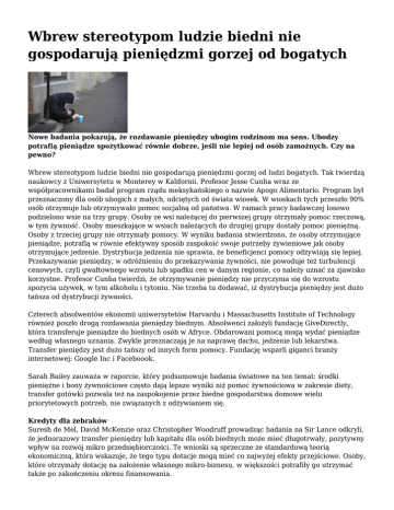 Wbrew stereotypom ludzie biedni nie gospodarują pieniędzmi