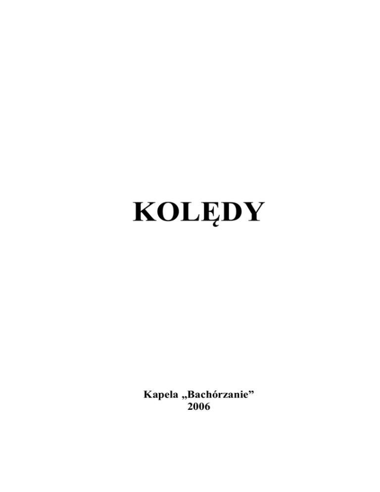 KOLĘDY Kapela „Bachórzanie” 2006 Spis kolęd Spis kolęd ................................................................................................. - 2 1. Pójdziemy bracia w drogę z wieczora D-dur ................................... - 3 2. Przylecieli tak śliczni Anieli C-dur ................................................. - 5 3. W dzień Bożego Narodzenia D-dur ................................................. - 6 4. Do szopy, hej, pasterze G-dur ......................................................... - 7 5. Anioł Pański otoczony C-dur .......................................................... - 8 6. Wesołą nowinę, bracia słuchajcie C-dur .......................................... - 9 7. Jezusa narodzonego D-dur ............................................................. - 10 8. W tej kolędzie D-dur ...................................................................... - 11 9. Witaj Zbawicielu C-dur................................................................. - 13 10. Stała nam się dziś nowina C-dur .................................................... - 14 11. Pójdźmy wszyscy do stajenki F-dur............................................... - 15 12. Z narodzenia Pana D-dur................................................................ - 16 13. A wczora z wieczora D-dur............................................................ - 17 14. Dzisiaj w Betlejem D-dur............................................................... - 18 15. My też pastuszkowie C-dur ............................................................ - 19 16. Niech gospodarz wesół będzie D-dur ............................................ - 21 17. Przystąpmy do szopy C-dur ........................................................... - 22 18. Dnia jednego o północy................................................................... - 23 - -2- 1. Pójdziemy bracia w drogę z wieczora 1. Pójdziemy bracia w drogę z wieczora Wstąpimy najpierw do tego dwora. Będziemy śpiewali wszędzie, O tak wesołej kolędzie, Hej kolęda, kolęda. 2. A nie żałujmy swojej ochoty Zaśpiewać Panu, stojąc przed wroty. Wykrzykujcie wielcy, mali, Żeby nam co prędzej dali, Hej kolęda, kolęda. 3. Zagraj ty bracie najprzód na lirze, A wy mu inni pomóżcie szczerze. Dalej i ty na fujarze, Potem który na czym może, Hej kolęda, kolęda. 4. Porwał się jeden z prędka za nami Zapomniał w domu buty z spodniami. Nie wytrwam tu miły bracie, Idź poszukać butów w chacie, Hej kolęda, kolęda. 5. A gdy się wracał, bieżał co skoku, A padł w zarywce, bo było w zmroku. Tam się nie mógł sam ratować, Musiał do rana nocować, Hej kolęda, kolęda. 6. Przyłączył się też, co był kulawy, I z tym ci w drodze dosyć zabawy. Bo skakał na jednej nodze, Druga go bolała srodze, Hej kolęda, kolęda. -3- D-dur 7. Był ci i taki, co bardzo zjesny, Ale z tym bieda bo niepośpieszny. Lada kędy sobie siędzie, Kiełbasy z torby dobędzie. Hej kolęda, kolęda. 8. Jeden się upił w karczmie na winie, A potem legnoł tuż przy kominie. Spalił sobie rękawice, I rękawy u górnice. Hej kolęda, kolęda. 9. A jednego nam w karczmie zabili, Wszędzie rad bywał gdzie goście byli. Ale nam ta nie żal tego, Wielki był desperat z niego. Hej kolęda, kolęda. 10.Jakosik bracia o nas nie dbają, Że nas na dworze długo trzymają. Nie trzymajcie nas na rzeczy, Bo już każdy ledwo skrzeczy. Hej kolęda, kolęda. 11.Poszliśmy wszyscy w jednym strzemieniu, Ale nie wszyscy w dobrym odzieniu. Bo niektóry w worowinie, Ledwo barki nią owinie. Hej kolęda, kolęda. 12.Sami nie wiemy, czego czekamy, Na ciężkim mrozie już ledwo trwamy. Odzież na nas bardzo licha, Już niektóry ledwo dycha. Hej kolęda, kolęda. 13.Możeć kolędę dziś dostaniemy, Jak nam nie dadzą, to odejdziemy. I będziemy rozgłaszali, Że tu skąpcy nic nie dali. Hej kolęda, kolęda. -4- 2. Przylecieli tak śliczni Anieli 1. Przylecieli tak śliczni Anieli, Wszyscy w bieli, złote piórka mieli. Przynieśli nam wesołą nowinę, Panna Czysta zrodziła Dziecinę. 2. A zrodziwszy w pieluszki powiła A powiwszy – na sianku złożyła. Leży, leży Jezus malusieńki, Leży, leży Jezus nagusieńki. 3. Zdjęła Panna swój rąbeczek z głowy Ściele w żłóbku Panu Jezusowi. A lulajże, drogie serce moje, Bo Cię kocham, tak, jak życie swoje. 4. Pastuszkowie, grajcie Stwórcy swemu, W tej stajence dla was zrodzonemu. Proścież Pana, by wam błogosławił, Tu na ziemi, a w niebie postawił. -5- C-dur 3. W dzień Bożego Narodzenia 1. W dzień Bożego Narodzenia Radość wszystkiego stworzenia Ptaszki w górę podlatują Jezusowi przyśpiewują. 2. Słowik zaczyna dyszkantem Szczygieł mu dobiera altem Szpak tenorem krzyknie czasem, A gołąbek gruchnie basem. 3. Wróbel ptaszek nieboraczek Zziąbłszy śpiewa niby żaczek Dziw, dziw, dziw, dziw, dziw nad dziwy, Narodził się Bóg prawdziwy. 4. A mazurek z swoim synem Tak świergoce za kominem Cierp, cierp, cierp, cierp, miły Panie Póki ten mróz nie ustanie. 5. A żurawie w swoje głosy Wykrzykują pod niebiosy, Czajka w górę podlatuje Chwałę Bogu wyśpiewuje. 6. Sroka wlazłszy na jedlinę Odarła sobie łysinę I choć gołe świeci czoło, Gwarzy jednak dość wesoło. 7. Kur na grzędzie krzyczy wszędzie, Wstańcie ludzie, bo dzień będzie. Do Betlejem pospieszajcie Boga w ciele przywitajcie. -6- D-dur 4. Do szopy, hej, pasterze 1. Do szopy, hej pasterze, Do szopy, bo tam cud, Syn Boży w żłobie leży, By zbawić ludzki ród. Śpiewajcie aniołowie, Pasterze grajcie Mu, Kłaniajcie się królowie, Nie budzie Go ze snu. 2. Padnijmy na kolana, To Dziecię to nasz Bóg; Witajmy swego Pana, Miłości złóżmy dług. 3. Bóg, stwórca wiecznej chwały, Bóg godzien wszelkiej czci, Patrz, w szopie tej zbutwiałej, Jak słodko on tam śpi. -7- G-dur 5. Anioł Pański otoczony C-dur 1. Anioł Pański otoczony światłością dokoła Objawia się dziś pasterzom i tak 
