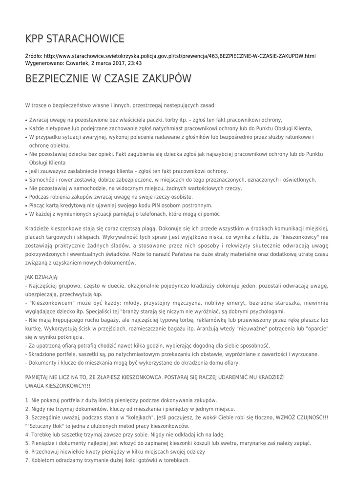 KPP STARACHOWICE BEZPIECZNIE W CZASIE ZAKUPÓW