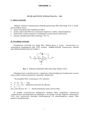 Przedmiotem cwiczenia jest uklad filtru Sallena−Keya w wersji zastosowanej we