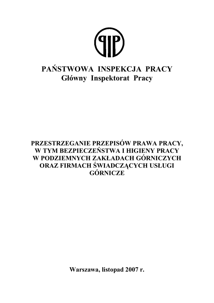 PAŃSTWOWA INSPEKCJA PRACY Główny Inspektorat Pracy PRZESTRZEGANIE PRZEPISÓW PRAWA PRACY, W TYM BEZPIECZEŃSTWA I HIGIENY PRACY W PODZIEMNYCH ZAKŁADACH GÓRNICZYCH ORAZ FIRMACH ŚWIADCZĄCYCH USŁUGI GÓRNICZE Warszawa, listopad 2007 r. Przestrzeganie przepisów prawa pracy, w tym bezpieczeństwa i higieny pracy w podziemnych zakładach górniczych oraz firmach świadczących usługi górnicze Wprowadzenie W górnictwie podziemnym węgla kamiennego oraz rud miedzi w ostatnich kilku latach obserwuje się niepokojącą tendencję wzrostu i nasilenia zagrożeń naturalnych. W kopalniach węgla kamiennego są to przede wszystkim: zagrożenie metanowe, rosnąca temperatura oraz zagrożenie tąpaniami. Natomiast w kopalniach rud miedzi występuje głównie zagrożenie ze strony tąpań oraz pogarszają się warunki klimatyczne. Wzrost zagrożenia metanowego, zagrożenia tąpaniami i systematyczne pogarszanie się warunków klimatycznych wynika z rosnącej z roku na rok głębokości, na jakiej wydobywane są surowce. Szczególnej uwagi wymagają zagrożenia metanowe. Na całym świecie postrzegane są one jako największe niebezpieczeństwo dla górnika, źródło wielu tragicznych katastrof. Na ich poziom wpływa kilka wzajemnie na siebie oddziałujących czynników. Jednym z nich jest niewątpliwie ekonomia. Z roku na rok wzrasta koncentracja wydobycia węgla, co poprawia wskaźniki ekonomiczne. Stosowane są też coraz wydajniejsze kompleksy ścianowe. Wzrostowi ilości urobionego węgla towarzyszy jednak wzrost ilości wydzielonego metanu, który coraz trudniej jest rozrzedzić metodami wentylacyjnymi tak, aby zminimalizować ryzyko występowania stref, czy miejsc, gdzie stężenie tego gazu może osiągać niebezpieczne wartości. Wraz z głębokością wzrasta bowiem poziom nasycenia węgla metanem i jest to zjawisko całkowicie od nas niezależne. Z drugiej jednak strony poszukiwanie oszczędności we wszystkich możliwych obszarach spowodowało, że po coraz głębiej zalegający węgiel, węgiel bardziej metanonośny, sięga się najtańszymi sposobami. Na coraz większą skalę występuje więc tzw. eksploatacja podpoziomowa będąca rozwiązaniem zdecydowanie gorszym, pod względem wentylacyjnym, od tradycyjnego, klasycznego sposobu udostępniania złoża. Na szczęście dzięki, nowoczesnym rozwiązaniom, z bardzo wysokim prawdopodobieństwem można określić miejsca i strefy, gdzie metanu będzie najwięcej. Możliwe jest również ciągłe mierzenie zawartości metanu w powietrzu kopalnianym, by przy jakimkolwiek przekroczeniu dopuszczalnego stężenia wyłączyć wszystkie 2 urządzenia elektryczne i zminimalizować ryzyko wystąpienia czynnika inicjującego zapłon. Mogłoby się zatem wydawać, że stosowane rozwiązania zabezpieczają całkowicie przed ryzykiem zapalenia lub wybuchu metanu. Jednakże, w ciągu ostatnich 10 lat statystycznie do zapalenia metanu dochodziło częściej niż raz do roku. Za oficjalnymi statystykami zapaleń metanu kryje się inna statystyka, której możemy się tylko domyślać. Zwykle zapalenie metanu poprzedzało wiele sytuacji, w których w podobny sposób lekceważono zagrożenie, a tylko zbiegowi okoliczności zawdzięczać należy, że nie doszło do nieszczęśliwego finału. W wielu przypadkach najsłabszym ogniwem był człowiek, który po latach pracy w warunkach zagrożenia metanowego utwierdził się w przekonaniu, że wyposażenie techniczne i system pomiarowy zapewniają mu całkowite bezpieczeństwo. Z tego względu nakaz bezwzględnego przestrzegania ustalonych rygorów postępowania nader często bagatelizował. Niestety także podczas kontroli stanowisk pracy pod ziemią stwierdzamy (na szczęście bardzo rzadkie) przypadki lekceważącego stosunku do zagrożenia metanowego. Przez niektórych pracowników i – co gorsze - osoby dozoru ruchu systemy metanometrii postrzegane są jako coś, co utrudnia osiągnięcie założonego wyniku produkcyjnego. Tego typu zachowania i mentalność doprowadziły m. in. do katastrofy, jaka miała miejsce w listopadzie 2006 r. w kopalni „Halemba” w Rudzie Śląskiej. Przyczyną tragicznego wydarzenia było zapalenie i wybuch metanu oraz wybuch pyłu węglowego, czego skutkiem było działanie na poszkodowanych płomienia o wysokiej temperaturze i dynamicznie przemieszczającej się fali ciśnieniowej oraz atmosfery niezdatnej do oddychania. Do wypadku przyczyniła się nieprawidłowa praca osób kierownictwa i dozoru ruchu kopalni oraz firmy wykonującej likwidację obudowy, polegająca m.in. na: dopuszczeniu do eksploatacji urządzeń elektrycznych w likwidowanej ścianie niespełniających wymagań przepisów; niewłaściwej ocenie ryzyka zawodowego, która nie uwzględniła w dostatecznym stopniu zagrożenia metanowego i wybuchem pyłu węglowego; niewycofywaniu pracowników z zagrożonego rejonu pomimo przekroczeń dopuszczalnych stężeń metanu oraz występowania mieszaniny wybuchowej; braku i niewłaściwej kontroli rejonu likwidowanej ściany, zgodnie z wymogami projektu technicznego; dopuszczeniu pracowników do pracy w trudnych warunkach bez wymaganych kwalifikacji i instruktażu oraz przystąpieniu do robót likwidacyjnych pomimo nieprzygotowania układu transportowego. 3 Rola organów sprawujących nadzór nad przestrzeganiem przepisów i zasad bezpieczeństwa pracy w kopalniach polegać więc musi także na wyznaczeniu granicy, kiedy względy ekonomiczne muszą ustąpić przed podstawowym nakazem zapewnienia bezpieczeństwa ludziom. Wyniki kontroli podziemnych zakładów górniczych W okresie od marca do września 2006 roku inspektorzy pracy przeprowadzili w 11 podziemnych zakładach górniczych, zatrudniających łącznie prawie 39000 pracowników, kontrole przestrzegania przepisów i zasad bezpieczeństwa i higieny pracy w strefach o największym poziomie zagrożeń naturalnych oraz przy pracach powodujących najpoważniejsze zagrożenia wypadkowe. W wyniku kontroli wyda