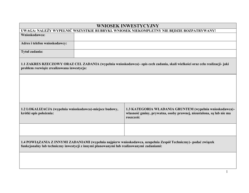 WNIOSEK INWESTYCYJNY