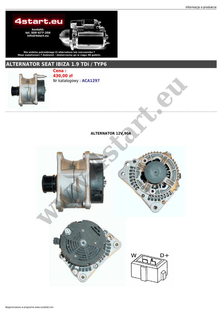 Informacje o produkcie ALTERNATOR SEAT IBIZA 1.9 TDi / TYP6 Cena : 430,00 zł ar t. eu Nr katalogowy : ACA1297 w w w .4 st ALTERNATOR 12V,90A Wygenerowano w programie www.oscGold.com ZASTOSOWANIE IBIZA 1.9 TDi 1996-1998 KODY SILNIKÓW: AFN; AHU BOSCH: 0123320038; w w w .4 st ar t. eu VOLKSWAGEN: 028903028J